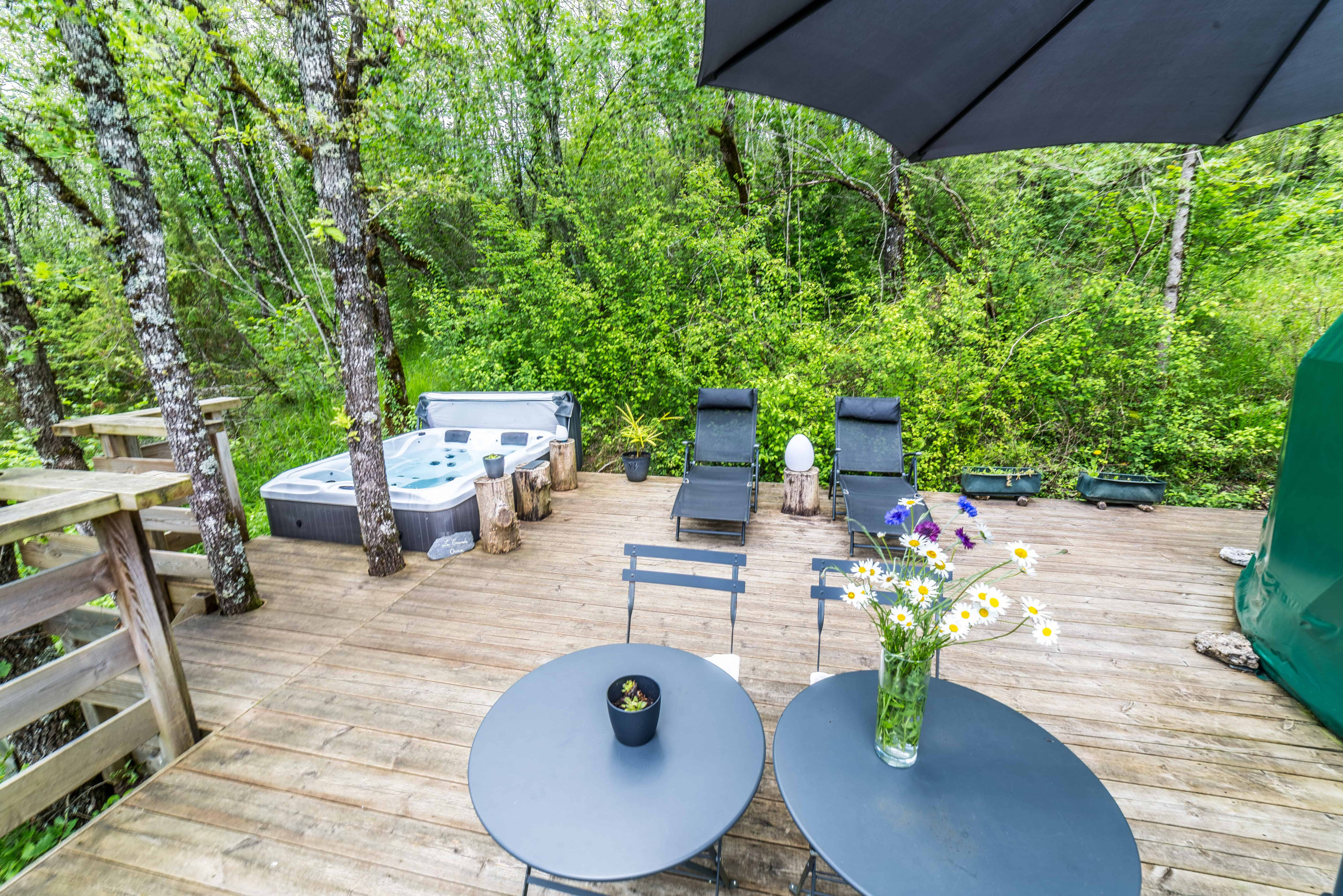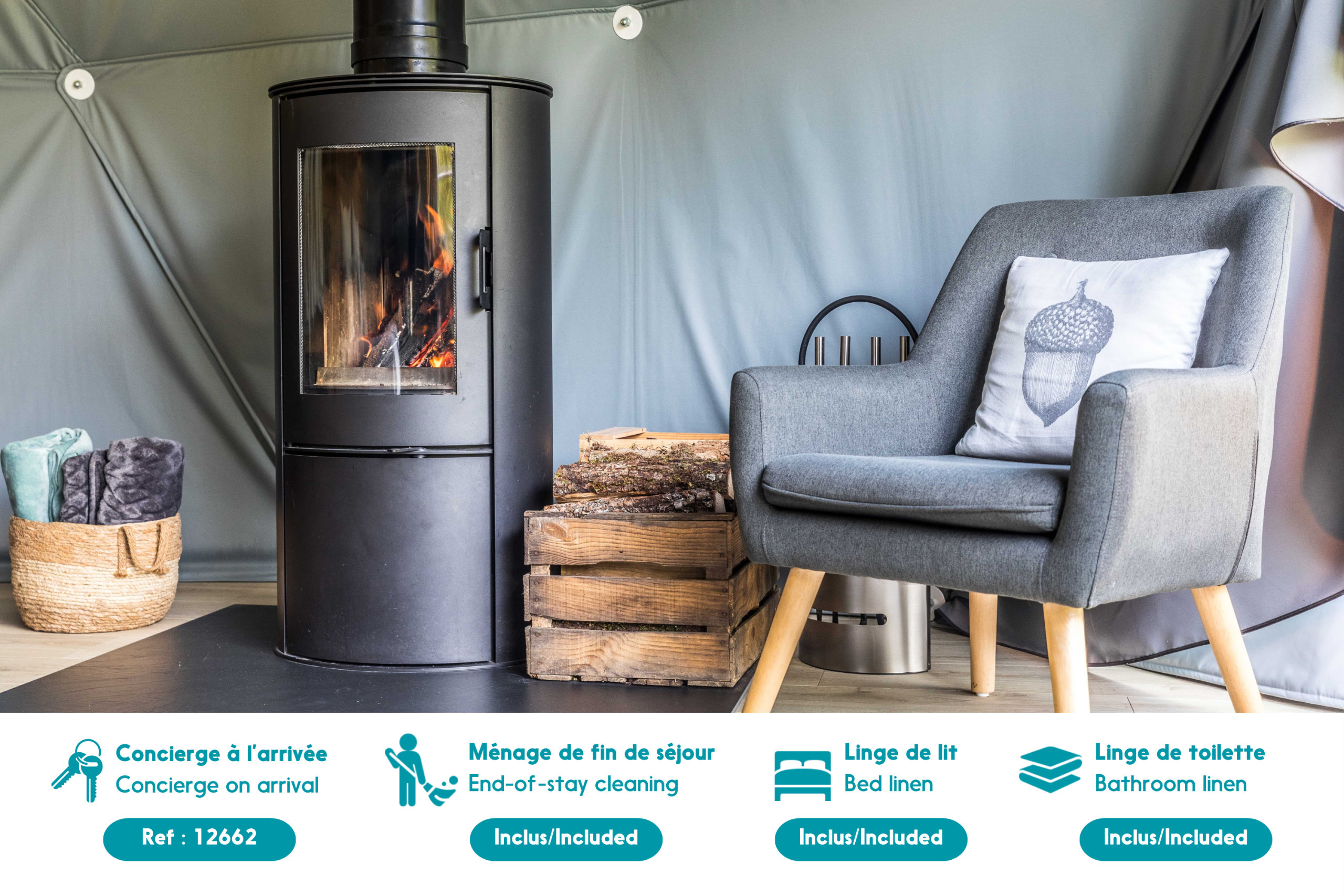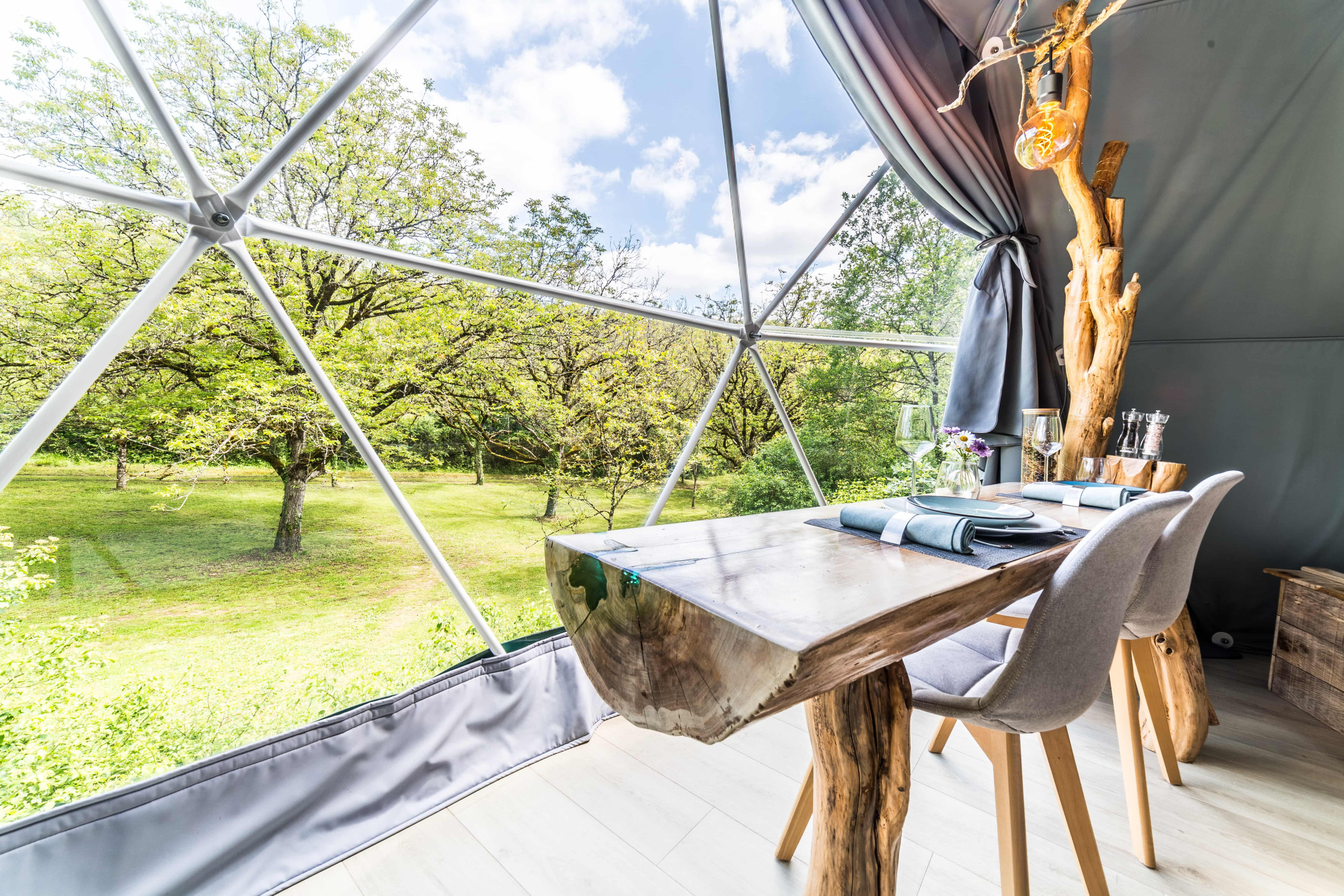 Willkommen im « Clair de Lune », einer Kuppel von 40 m², die in einer friedlichen Umgebung im Herzen der Landschaft von La Dornac liegt. Eingebettet in eine kleine natürliche Lichtung ist dieser intime Kokon sorgfältig dekoriert und darauf ausgelegt, Ihnen einen unvergesslichen Moment der Entspannung zu bieten. Sie werden eine große private Terrasse mit einem Essbereich sowie einen exklusiven Whirlpool genießen.