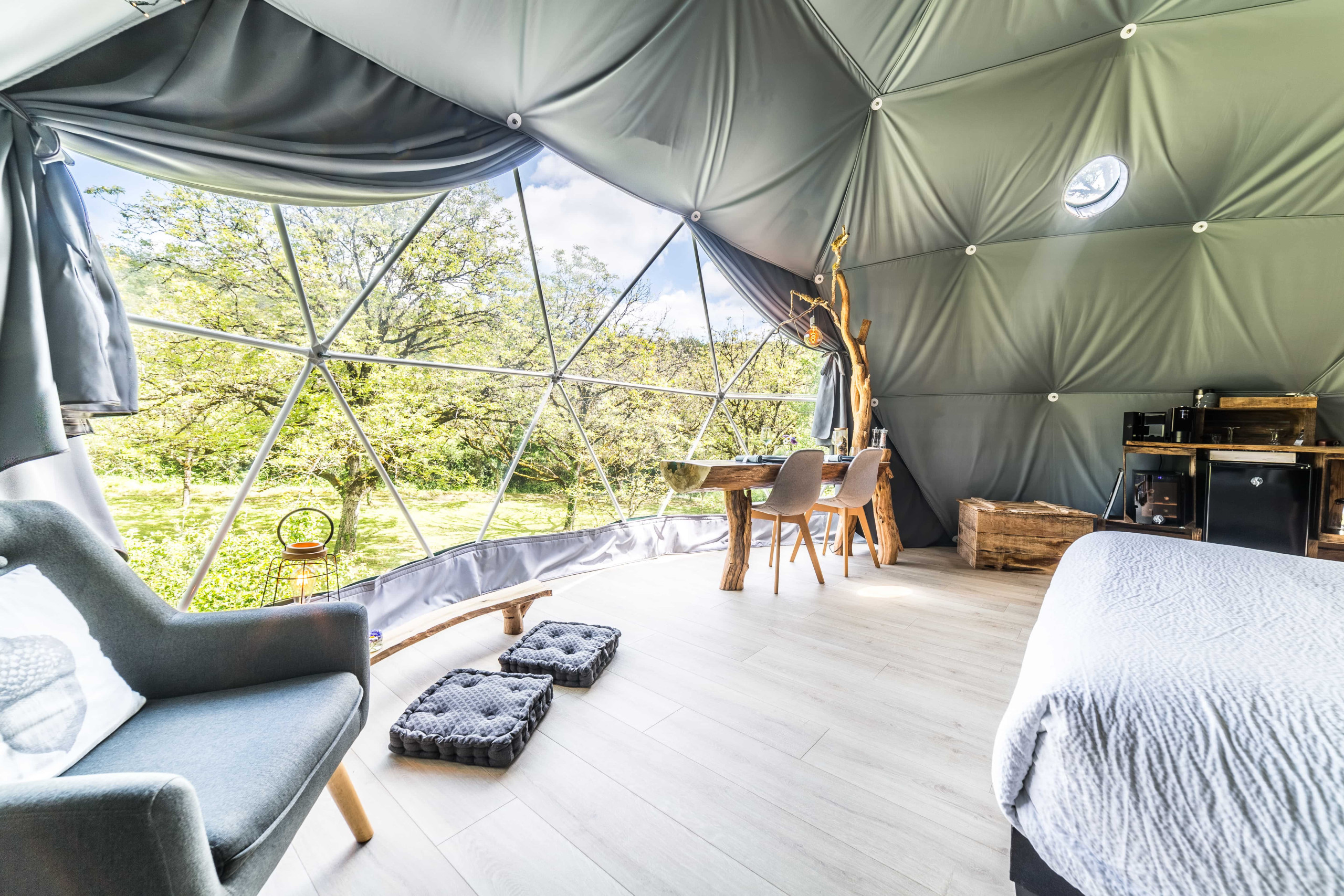 Willkommen bei « La Grande Ourse », einer Kuppel von 40 m², die in einer friedlichen Umgebung im Herzen der Landschaft von La Dornac installiert ist. Dieses Nest, das am Waldrand liegt, ist sorgfältig dekoriert und darauf ausgelegt, Ihnen einen wahren Moment der Entspannung zu bieten. Sie werden eine große private Terrasse mit einem Essbereich sowie einen exklusiven Whirlpool genießen.