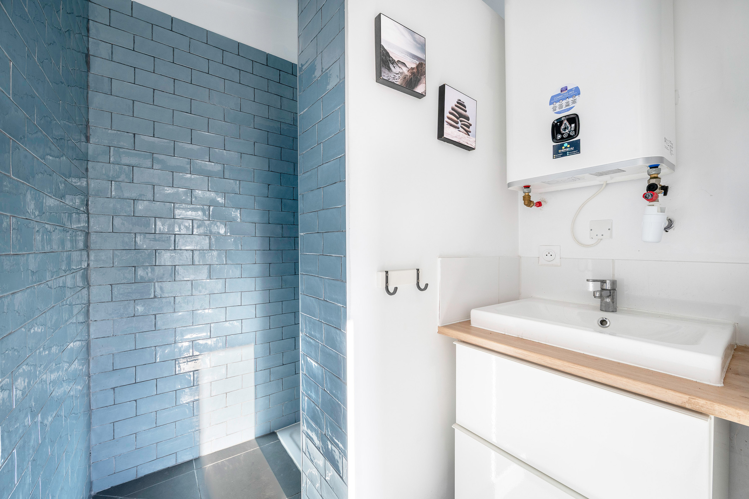 Über einen gesicherten Privatweg gelangen Sie zur Unterkunft und zur gefliesten Terrasse von 20 m² ohne Einblicke, mit einem Tisch, Außenstühlen, zwei Liegestühlen, einem Sonnenschirm, einem Holzkohlegrill und einer Außendusche für Ihre Rückkehrer vom Strand.