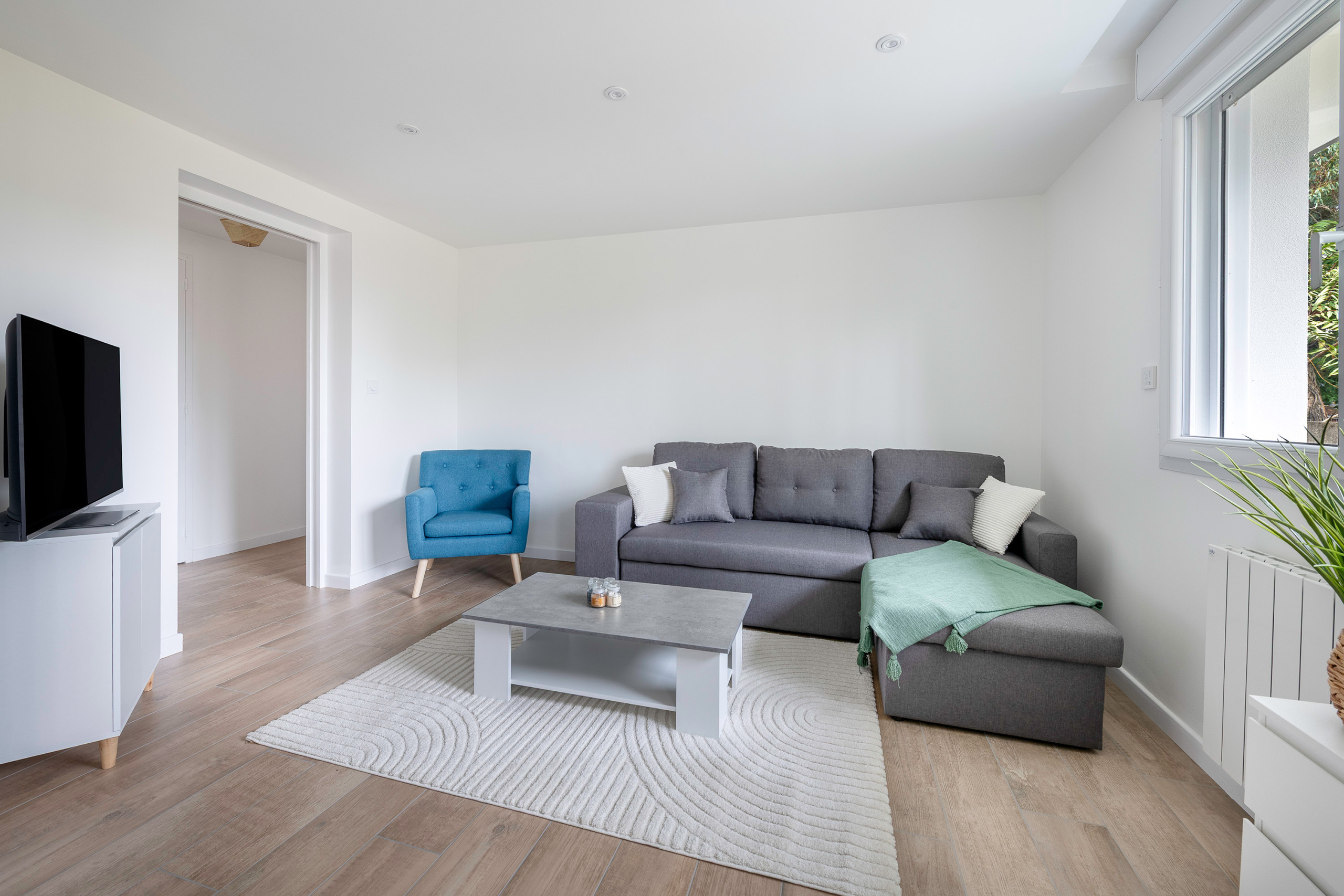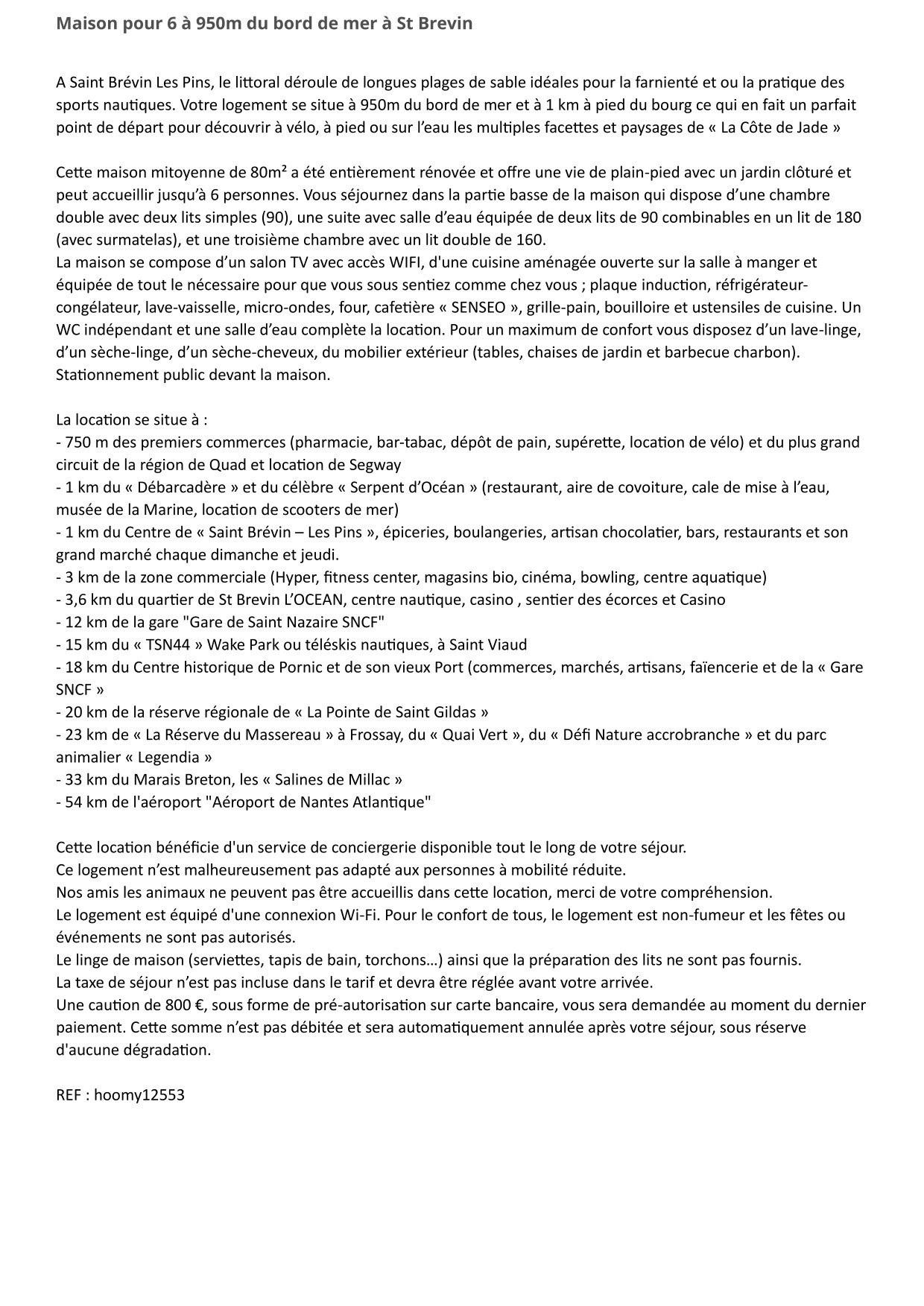 Dieses Reihenhaus mit 80 m² wurde vollständig renoviert und bietet ein Erdgeschossleben mit einem eingezäunten Garten und kann bis zu 6 Personen aufnehmen. Sie übernachten im unteren Bereich des Hauses, der ein Doppelzimmer mit zwei Einzelbetten (90) verfügt, eine Suite mit Duschraum, ausgestattet mit zwei 90er Betten, die zu einem 180er Bett kombiniert werden können (mit Matratzenauflage), und ein drittes Zimmer mit einem Doppelbett von 160.