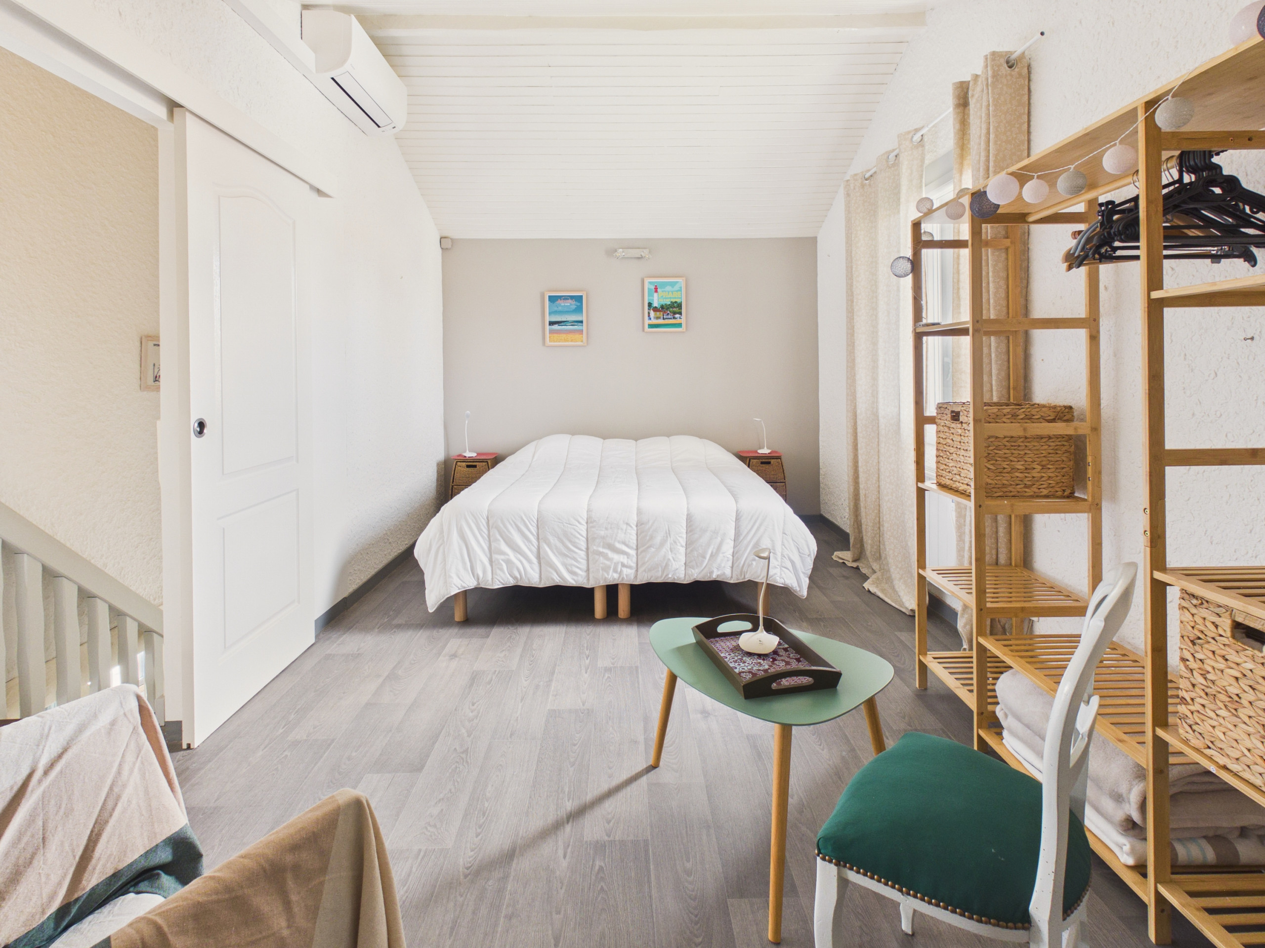 Hier setzen wir auf das, was bereits vorhanden war. Wir haben schöne alte Möbel gerettet, um den ursprünglichen Charme dieses Hauses am Meer zu bewahren. Man schaltet ab, vergisst das Tablet für ein Brettspiel, genießt einen großen Garten von 1000 m² zum Draußenspielen oder zum Entspannen im Schatten einer hundertjährigen Eiche. In diesem schönen bewaldeten Garten finden Sie die notwendigen Möbel für Ihre Mahlzeiten im Freien und zum Ausruhen oder Lesen eines guten Buches. Ein Grill wartet darauf, köstliche Grillgerichte auf Glut zuzubereiten.