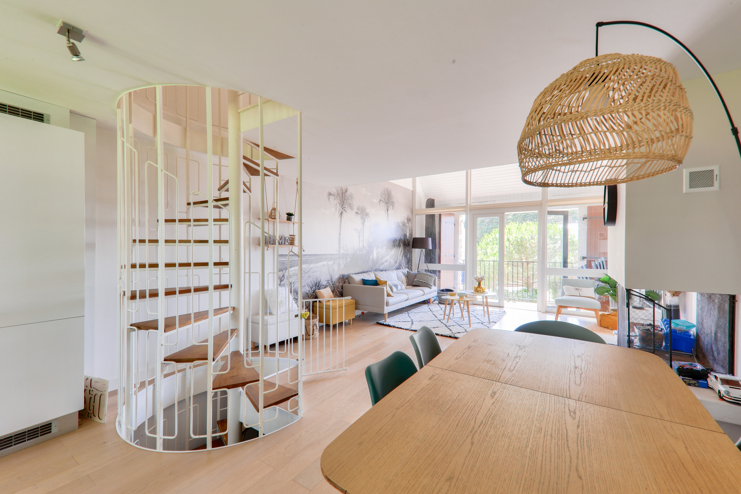 Hier finden Sie eine Wendeltreppe. Im Erdgeschoss befindet sich das erste Schlafzimmer mit einem Queen-Size-Bett, das eine schlaffördernde Atmosphäre bietet, sowie ein Badezimmer und eine separate Toilette, die zu einer angenehmen Galerie führen. Unter dem Dach im obersten Stockwerk finden Sie das letzte geräumige Schlafzimmer mit drei Einzelbetten und einer farbenfrohen Atmosphäre. Von seinen zwei Fenstern aus können Sie den Meerblick bewundern.