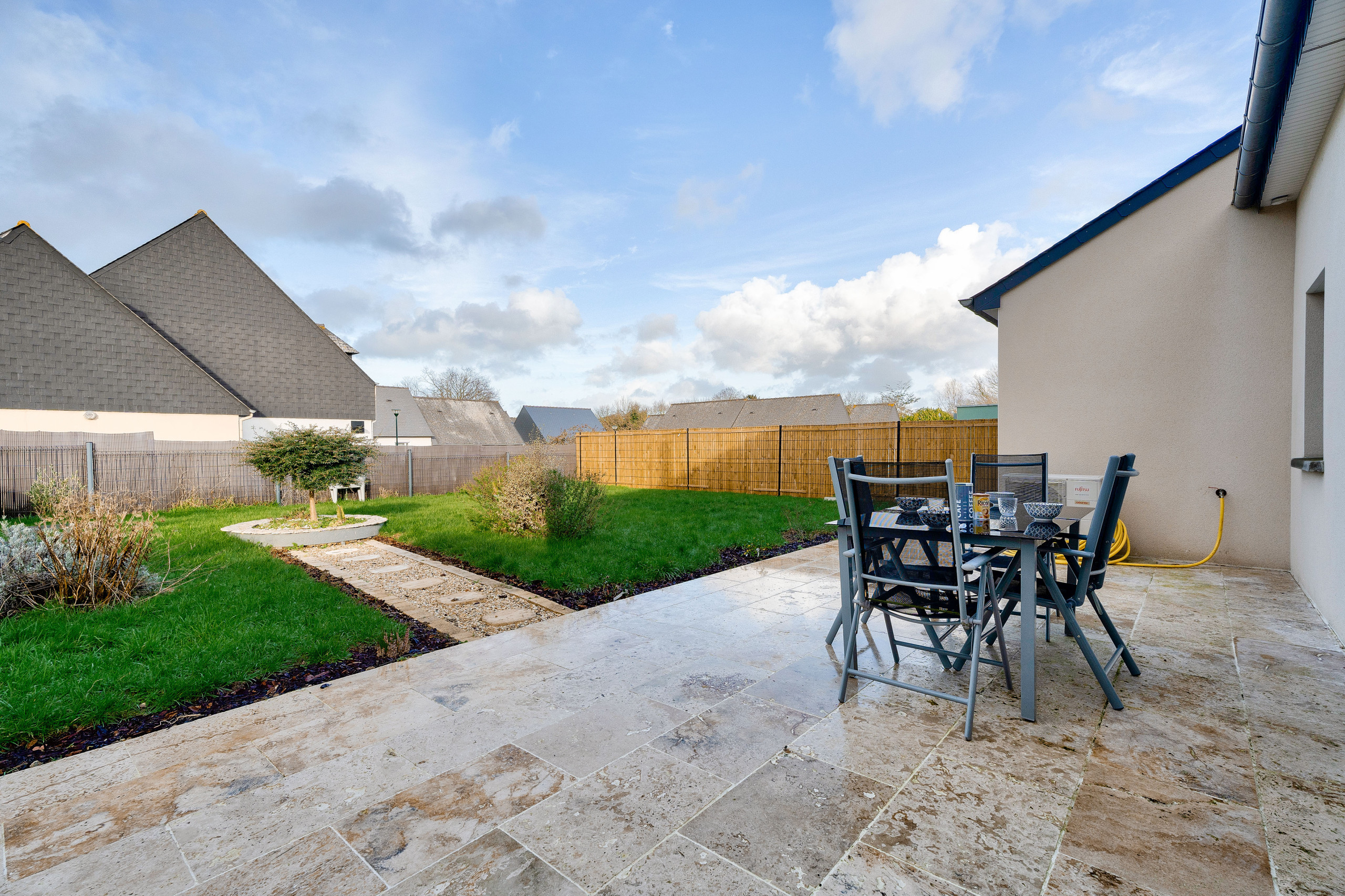 Im Freien, der geschlossene und grüne Garten wird Groß und Klein für Momente der Entspannung im Freien begeistern. Eine schöne 35 m² große Terrasse, ausgestattet mit Gartenmöbeln und einem Grill, wird der perfekte Verbündete für sonnige Mittagessen und Ihre Sommerabende sein.