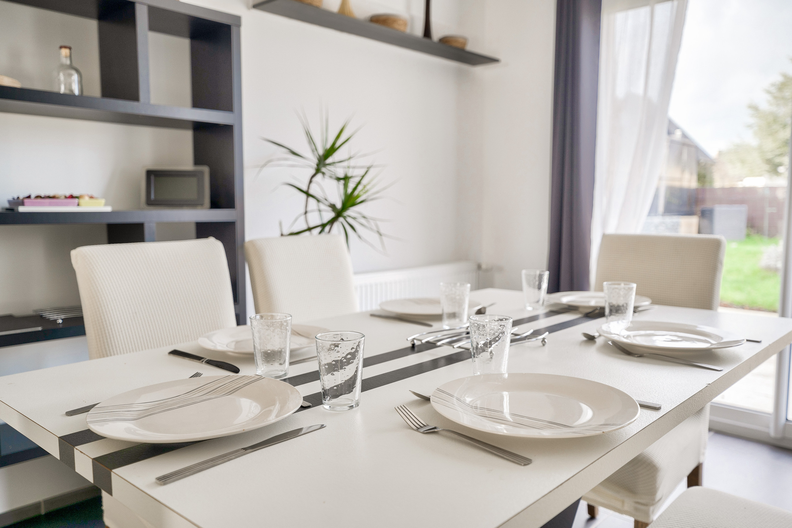 Im Inneren werden Sie bei Ihrem Betreten in einem schönen, lichtdurchfluteten und gemütlichen Wohnbereich begrüßt. Das Wohnzimmer, eingerichtet mit einem großen, bequemen Ecksofa und einem Fernseher, lädt zur Entspannung nach einem Tag voller Entdeckungen ein. Der angrenzende Essbereich ermöglicht es, gute Mahlzeiten um den großen Tisch herum zu teilen. Die offene Küche, modern und funktional, ist komplett ausgestattet: Induktionsherde, Kühlschrank, Gefrierschrank, Backofen, Mikrowelle, Geschirrspüler, Senseo-Kaffeemaschine, Toaster, Wasserkocher, Raclette-Gerät und alles Nötige, um wie zu Hause zu kochen.