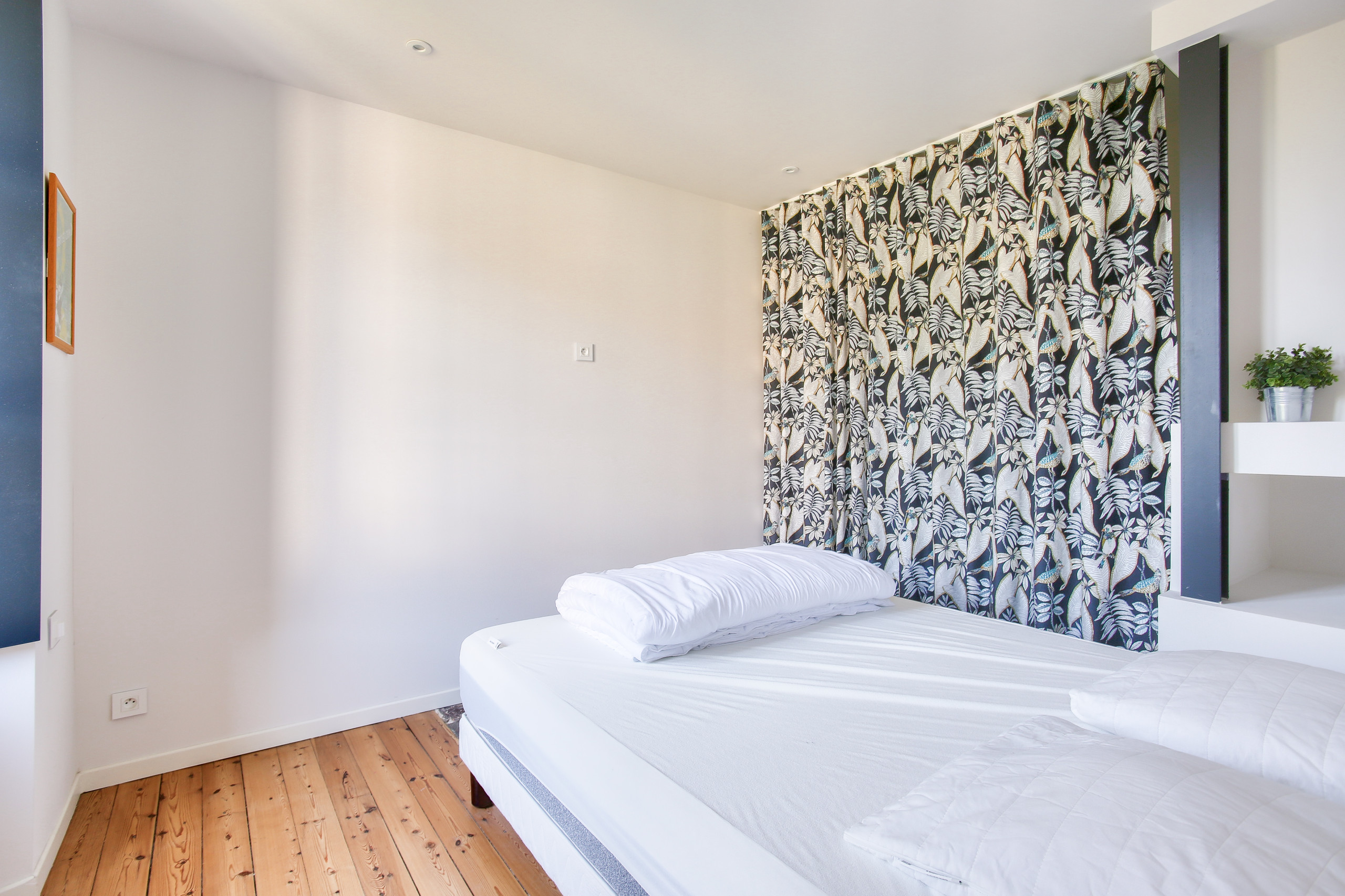 Der Schlafbereich des Hauses ist in 4 Zimmer unterteilt. Das erste im Erdgeschoss verfügt über ein großes Doppelbett und einen Schreibtisch, es herrscht eine Atmosphäre, die einen guten Schlaf begünstigt, dann befinden sich die drei anderen im Obergeschoss. Zwei davon haben ein Doppelbett und das letzte ist mit zwei Einzelbetten ausgestattet.