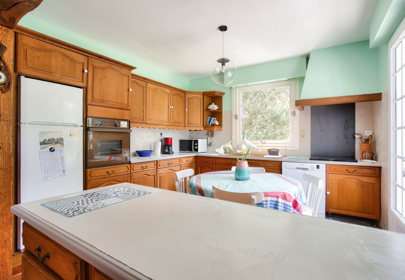 Das Haus ist hell, das Wohnzimmer ist ein angenehmer Ort, an dem Sie sich zu einer Tasse Kaffee oder einem Brettspiel treffen möchten. Seine schöne Deckenhöhe verleiht ihm einen gewissen Charme. Dann finden Sie auch ein zur Küche offenes Esszimmer, einen hellen Raum mit Blick auf den Garten. Die Küche ist komplett ausgestattet (Induktionsherd, Kühlschrank, Mikrowelle, Backofen, Mikrowelle, Backofen, Gefrierschrank, Backofen, Gefrierschrank, Geschirrspüler, Senseo-Kaffeemaschine, Toaster, Wasserkocher, Raclette-Maschine und Saftpresse). Sie können gutes Essen kochen und alles zusammen am großen Tisch genießen.