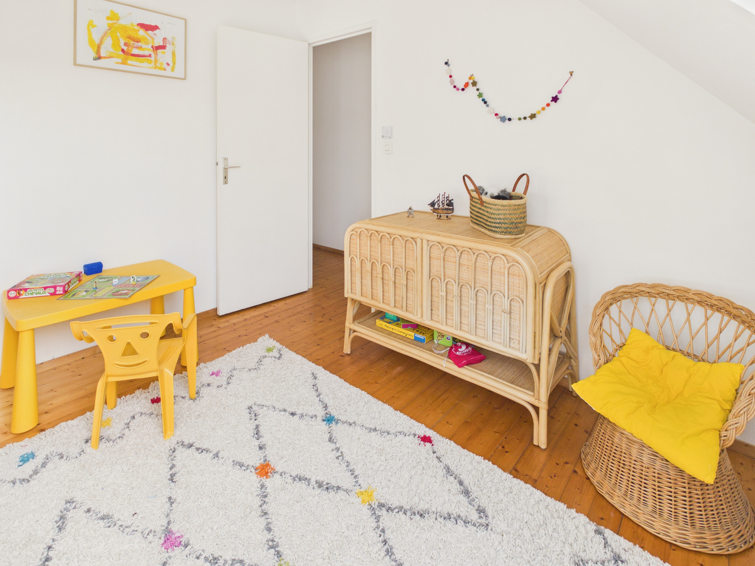 Schlafzimmer 2: Ein Etagenbett (90x190 cm) und Spielzeug für Kinder.