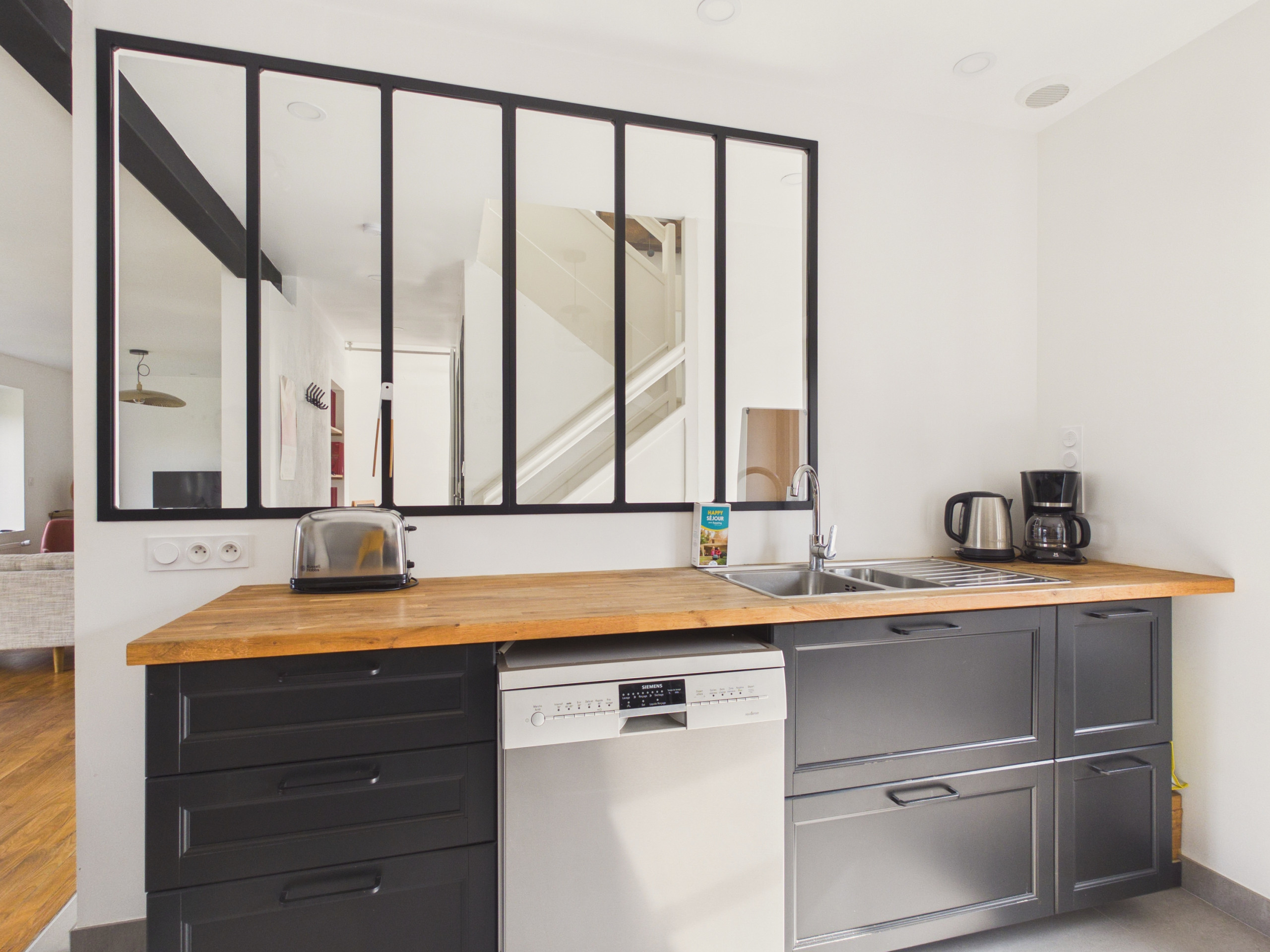 Bei Ihrer Ankunft in diesem Haus werden Sie einen großen Wohnbereich mit Sofa und Fernseher entdecken (der Kamin ist nicht funktionsfähig). Die Küche, die zum Esszimmer hin offen ist, ist mit einem Backofen, einer Mikrowelle, einem Kühl-/Gefrierschrank, einer Spülmaschine, einem Wasserkocher, einer Nespresso-Kaffeemaschine, einem Toaster und allen notwendigen Kochutensilien ausgestattet.