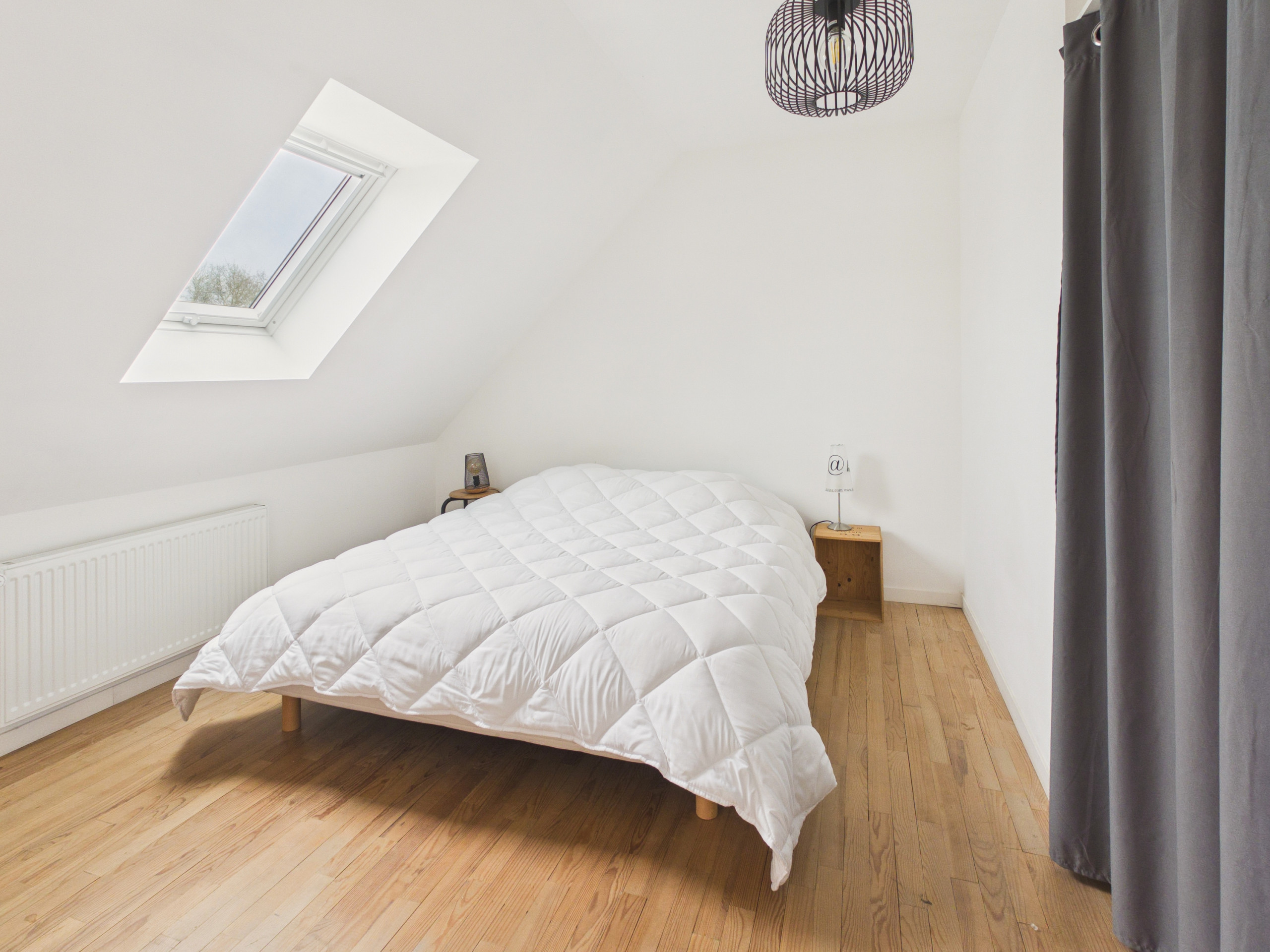 Im Obergeschoss entdecken Sie die drei anderen Schlafzimmer: das erste mit einem Queensize-Bett (160x200), das zweite mit einem Einzelbett (90x190) (ideal für ein Kind) und das letzte mit zwei Einzelbetten (90x190). Es gibt auch ein Badezimmer und eine weitere separate Toilette.
