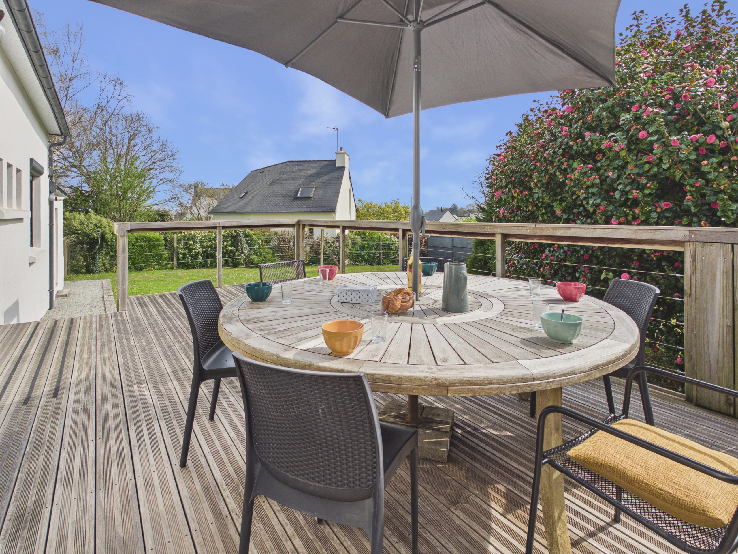 Entdecken Sie Fouesnant, die Hauptstadt der Bretonischen Riviera, die Ruhe und Outdoor-Aktivitäten vereint. Verbringen Sie Ihren Aufenthalt in einer geräumigen und hellen Unterkunft von 160 m², die bis zu 6 Erwachsene und 1 Kind aufnehmen kann, ideal für Familien- oder Freundesurlaub. Dieses Haus befindet sich in der Stadt in einer ruhigen Gegend, nur wenige Kilometer von den Stränden von Cap Coz, Beg Meil und Mousterlin entfernt. Sie können die schönen Strände und die zahlreichen Wanderwege jederzeit genießen! Sie verfügen über einen großen Garten und eine Terrasse von 55 m², ideal, um morgens beim Frühstück und beim Sonnenuntergang während des Aperitifs die Sonne zu genießen. Eine Plancha steht Ihnen auch zur Verfügung, um sich im Sommer zu verwöhnen.