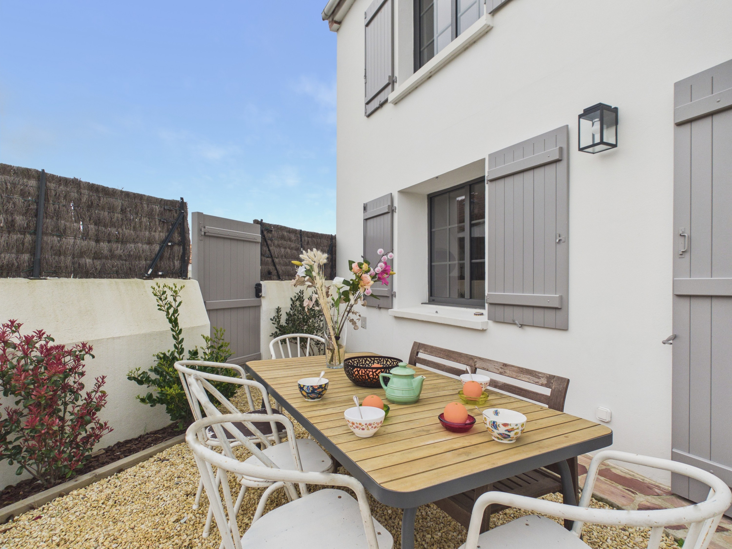 Im Freien stellt der eingezäunte Garten einen echten Vorteil für Familien dar und bietet einen sicheren Raum, in dem Kinder frei spielen können. Sie können entspannte Momente mit der Familie auf der Terrasse mit Gartenmöbeln genießen und sich um die Plancha versammeln, um leckere Sommergrills zu genießen.