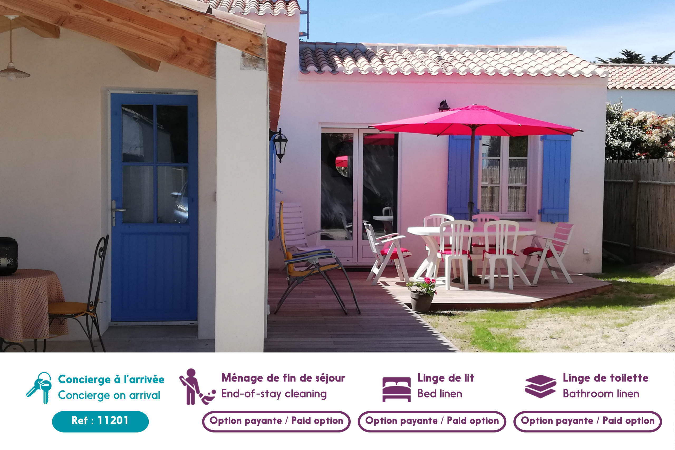 Dieses Haus mit blauen Fensterläden in L'Epine ist der ideale Ort, um Ihren Urlaub mit Familie oder Freunden zu genießen! In einer ruhigen Gegend, nicht weit vom Zentrum, den Stränden und dem Marktplatz entfernt, können Sie Ihren Urlaub zu Fuß oder mit dem Fahrrad in vollen Zügen genießen.