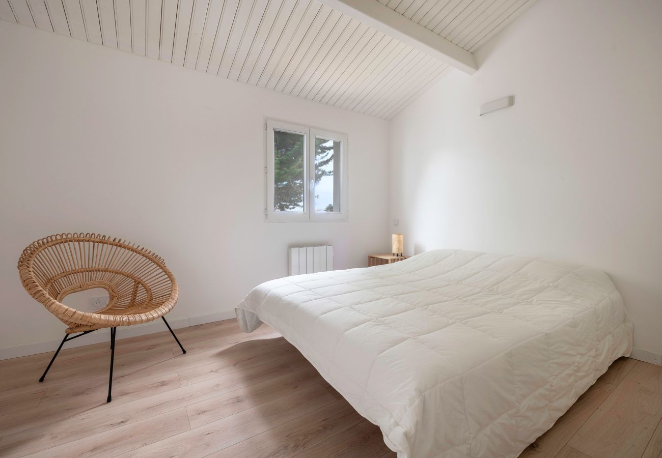 Das Erdgeschoss verfügt über zwei Doppelzimmer (Bett 140) und im Obergeschoss über einen Schlafsaal mit einem Doppelbett (Bett 140) und zwei Einzelbetten (Bett 90), die insgesamt bis zu 8 Personen aufnehmen können.