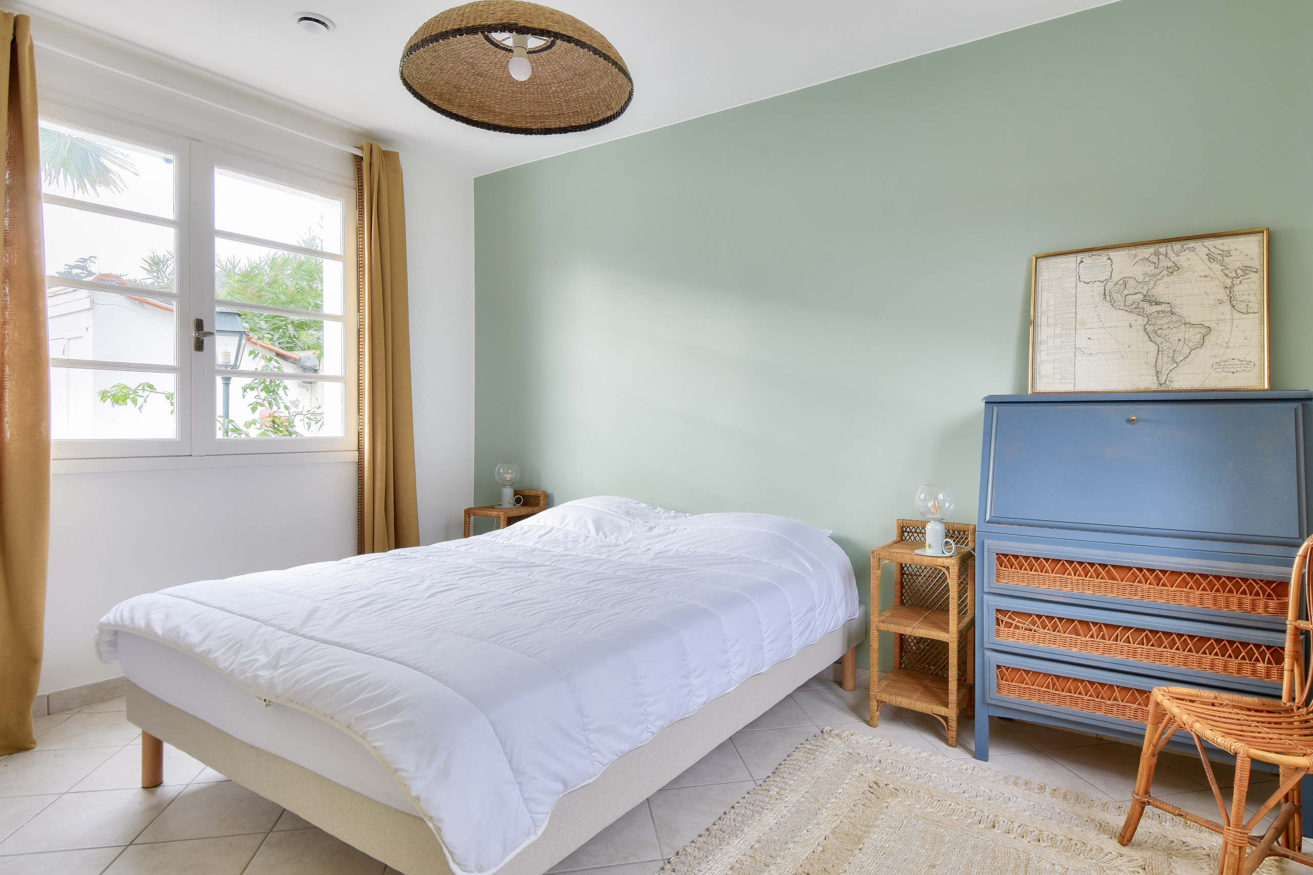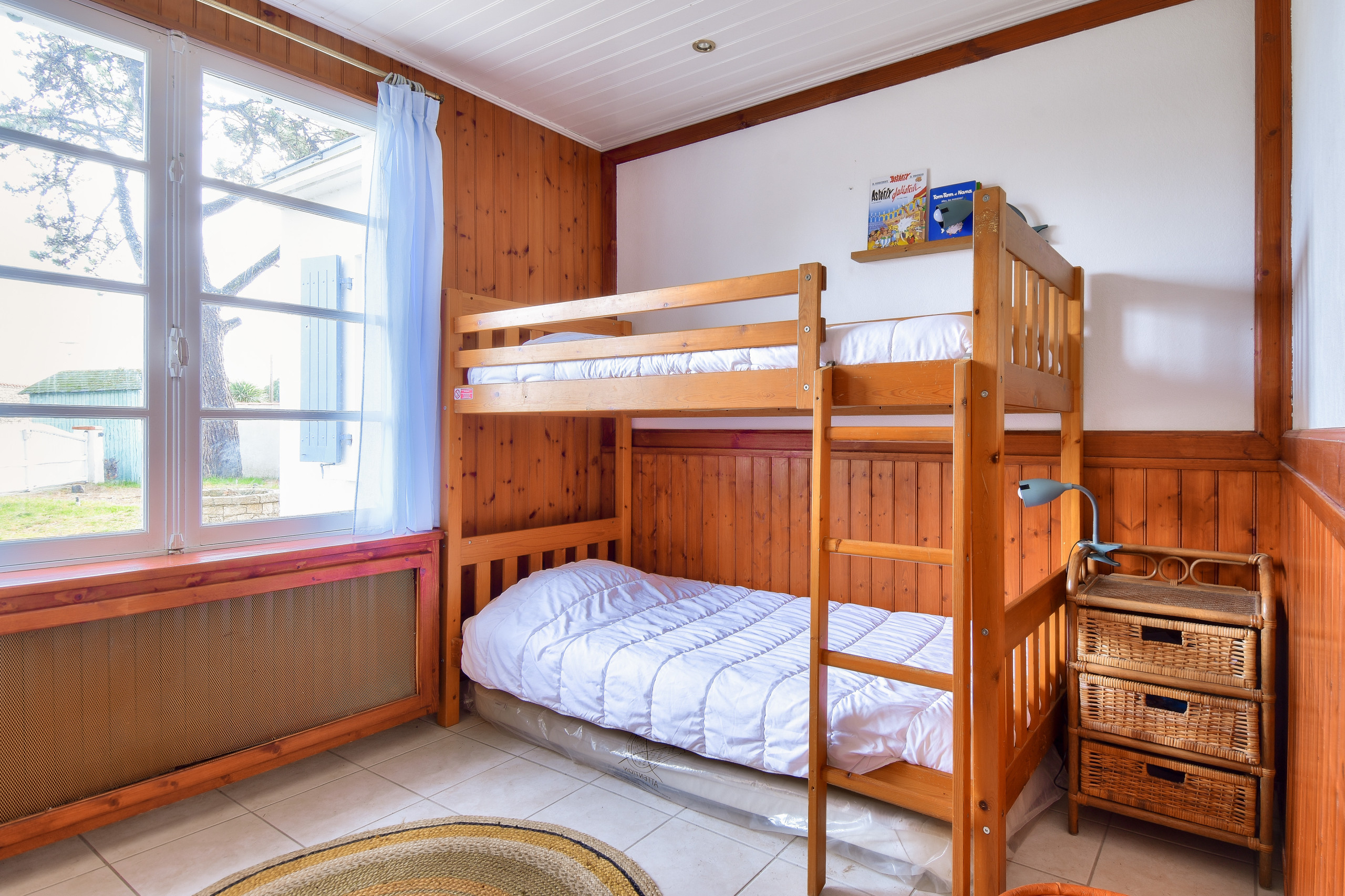 Für die Nacht verfügt das Haus über fünf komfortable Schlafzimmer, die für bis zu 6 Erwachsene und 4 Kinder konzipiert sind. Ein erstes Schlafzimmer ist mit einem Queen-Size-Bett (160x200) ausgestattet, ein zweites mit einem Doppelbett (140x190), ein drittes mit Einzelbetten (90x190) und zwei weitere Zimmer sind mit Stockbetten (80x190) eingerichtet, ideal für Kinder. Das Haus verfügt zudem über zwei separate WCs, ein Badezimmer mit Dusche und Haartrockner sowie ein Badezimmer mit Badewanne, für den Komfort aller.