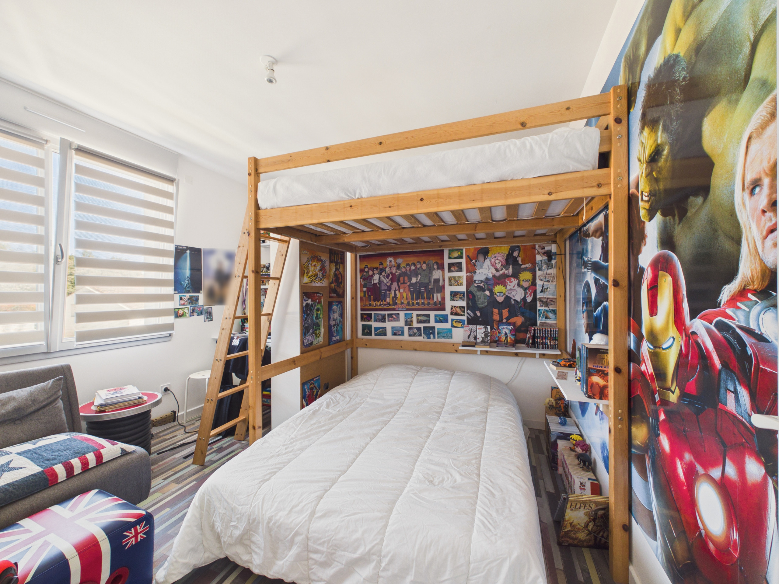 Schlafzimmer 4: Ein Doppelbett (140x200) und ein Etagenbett (140x200)