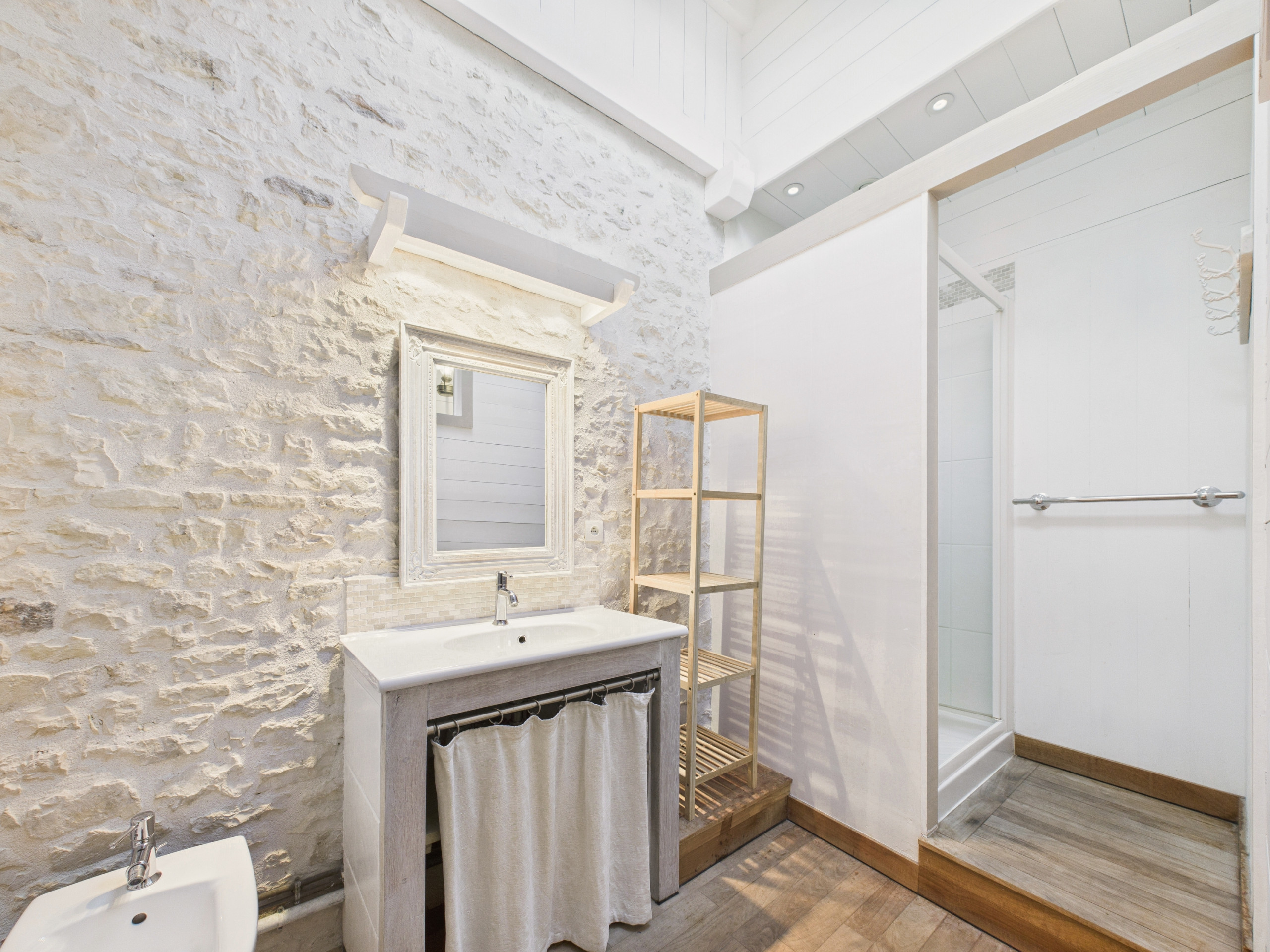 Im Obergeschoss besteht der Nachtbereich aus vier komfortablen Schlafzimmern: ein Schlafzimmer mit einem Queen-Size-Bett (160x200), zwei Schlafzimmer mit Doppelbett (140x190) und ein Schlafzimmer mit zwei Einzelbetten (90x190). Ein Badezimmer mit Dusche befindet sich ebenfalls in diesem Stockwerk für noch mehr Praktikabilität. Ein zweites Badezimmer ist im Erdgeschoss, in der Garage, zugänglich, wo Sie auch bis zu 8 Fahrräder lagern können, ideal für Ihre Ausflüge auf den zahlreichen Radwegen der Insel. Zwei separate WCs ergänzen das Haus, eines in jedem Stockwerk.