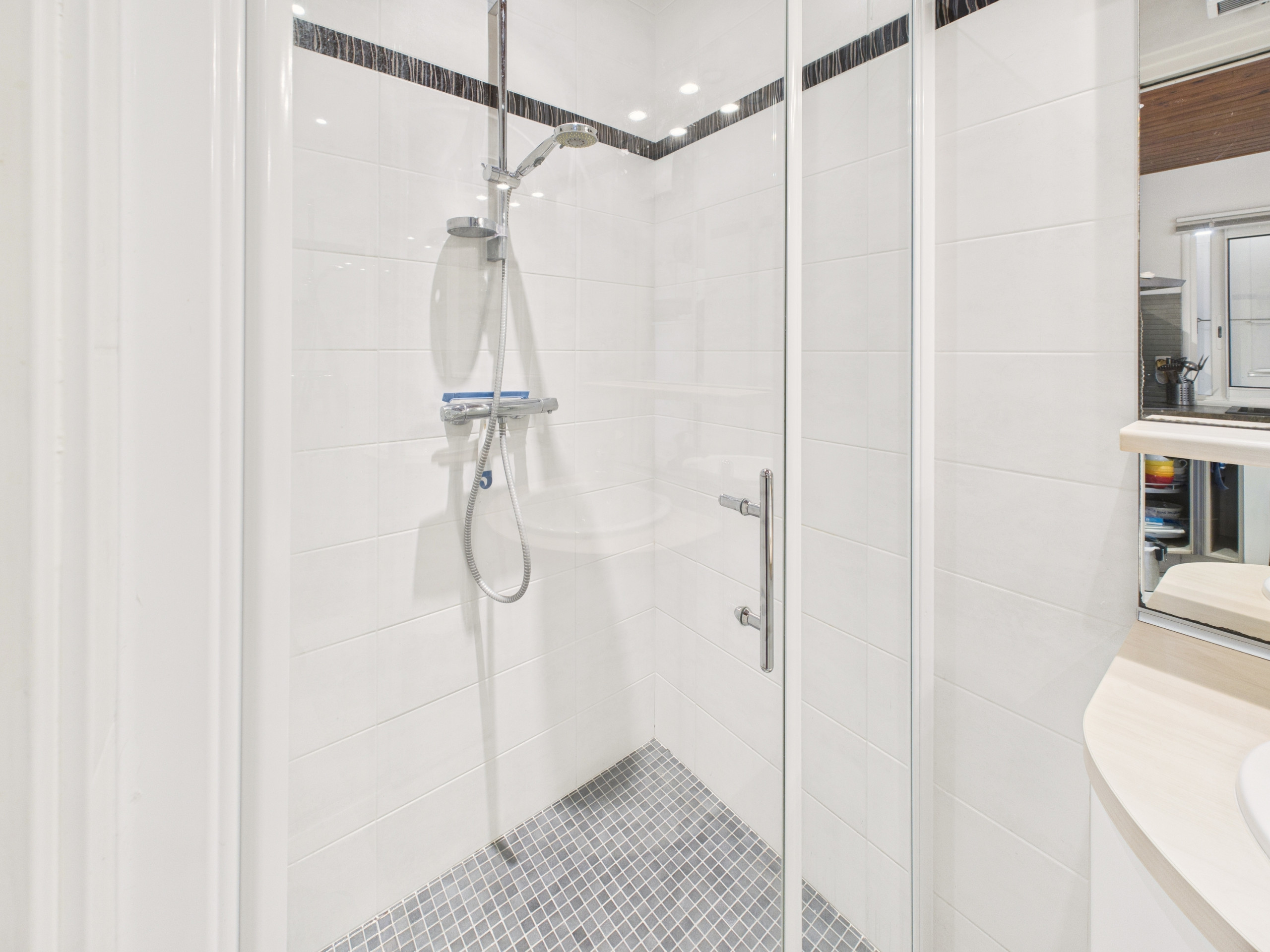 Der Hauptschlafbereich besteht aus einem einladenden Schlafzimmer mit einem Queen-Size-Bett (160x200). Ein zweites Schlafzimmer mit einem Einzelbett (80x190) ist perfekt für ein Kind. Zu Ihrem Komfort befindet sich in der Nähe ein Badezimmer mit Dusche und Föhn sowie eine separate Toilette.