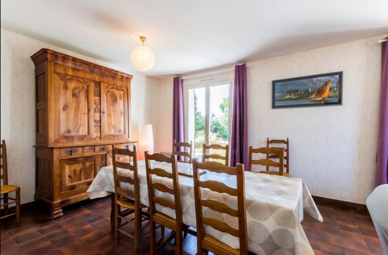Das Haus kann bequem 8 Personen mit seinen 5 Schlafzimmern aufnehmen. Das erste befindet sich im Erdgeschoss und bietet allen notwendigen Komfort mit einem Queensize-Bett (160) und einem angrenzenden Badezimmer. Im ersten Stock finden Sie vier weitere Schlafzimmer, drei mit einem Queensize-Bett und eines mit zwei Einzelbetten. Alle sind schlicht eingerichtet und bewahren ihren alten Parkettboden, wodurch sie zum Schlafen einladen. Für mehr Komfort steht ein Badezimmer mit Dusche und Badewanne zur Verfügung, ein weiteres Badezimmer befindet sich im Obergeschoss, und Sie haben Zugang zu einer Waschmaschine, einem Föhn und einem Grill.