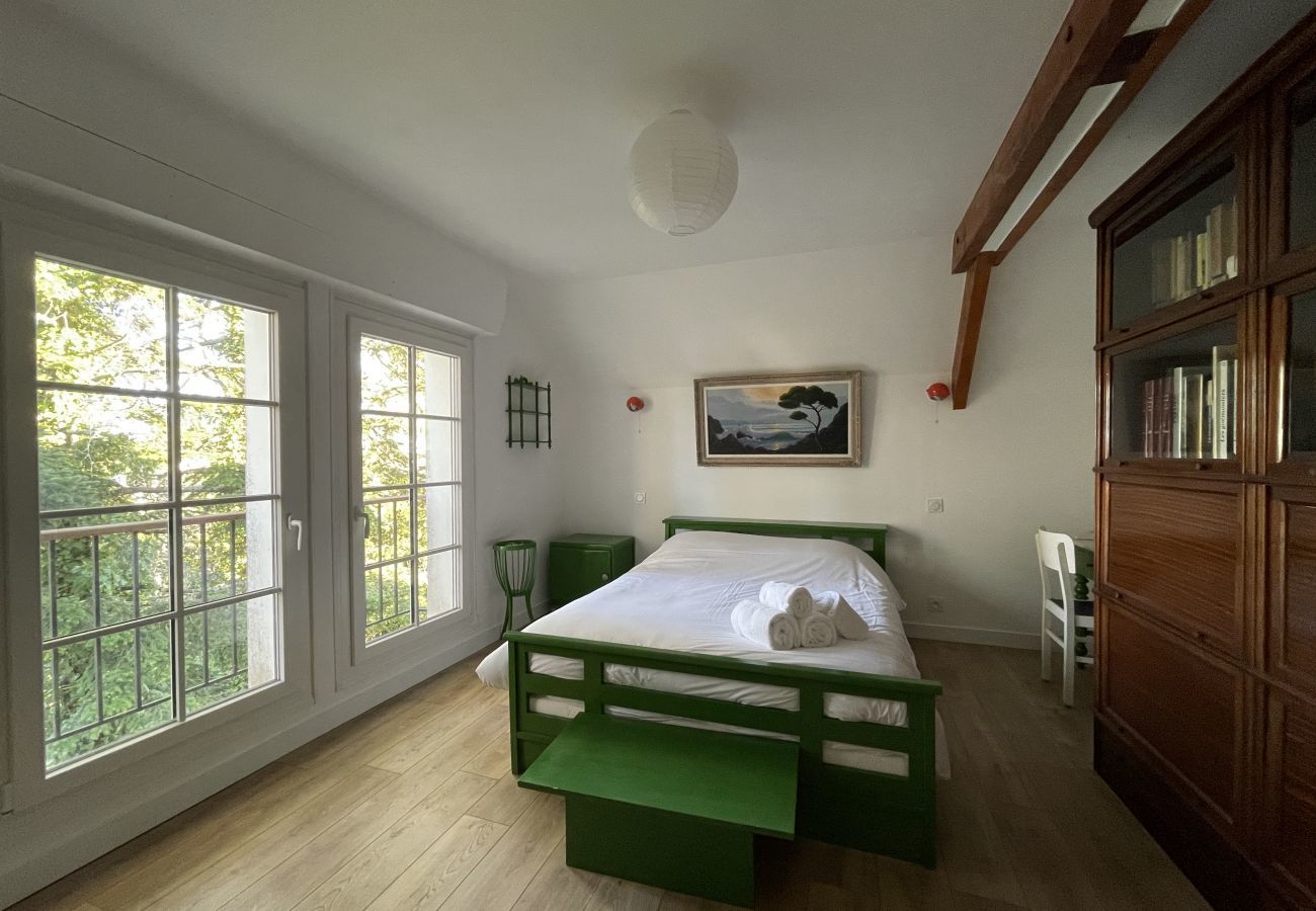 Das Haus bietet Platz für bis zu 6 Personen, es hat 4 Schlafzimmer und zwei Badezimmer. Zwei der Zimmer blicken auf den Garten, was ihnen eine ruhige Atmosphäre verleiht. Die anderen beiden sind moderner und befinden sich unter den Dächern, was sie zu zwei gemütlichen Kokons macht, in denen Sie sich entspannen möchten.