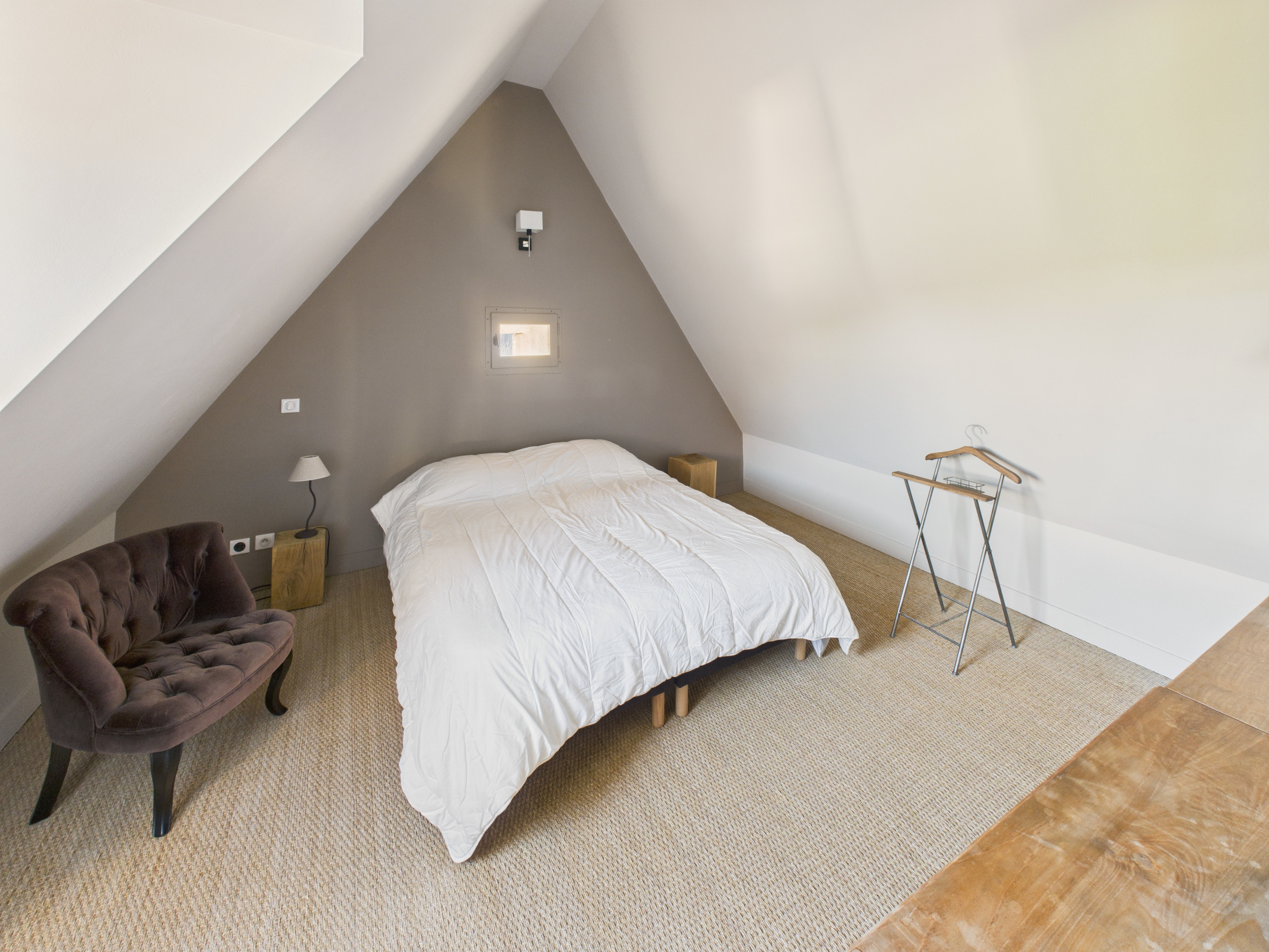 Schlafzimmer 3 - im Obergeschoss: ein Queensize-Bett (160x200 cm) und eine Kommode.