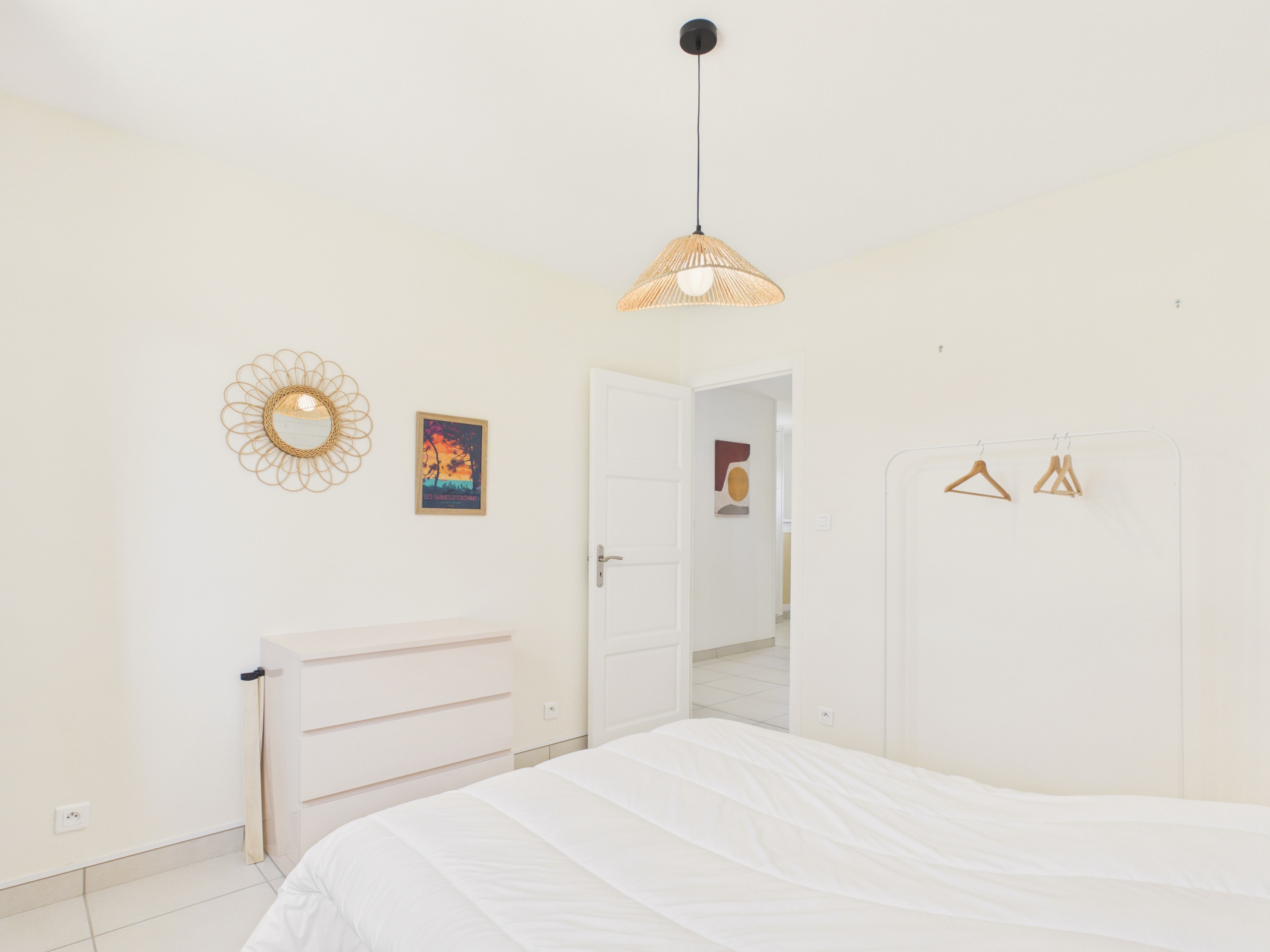 Das Haus kann bis zu 8 Personen aufnehmen, perfekt für einen Familienaufenthalt. Es verfügt über 3 Schlafzimmer. Im Erdgeschoss befindet sich das erste Schlafzimmer mit einem Queen-Size-Bett, dessen natürliche Töne Ihnen eine ideale Atmosphäre für eine gute Nachtruhe bieten. Im Obergeschoss finden Sie zwei weitere Schlafzimmer. Das erste verfügt ebenfalls über ein Queen-Size-Bett und eine beruhigende Atmosphäre, und das letzte wird die Kinder mit seinen 2 Einzelbetten und dem Ausziehbett begeistern. Im Erdgeschoss steht ein Waschraum mit WC zur Verfügung, und im Obergeschoss befindet sich ein Badezimmer mit Badewanne und italienischer Dusche.