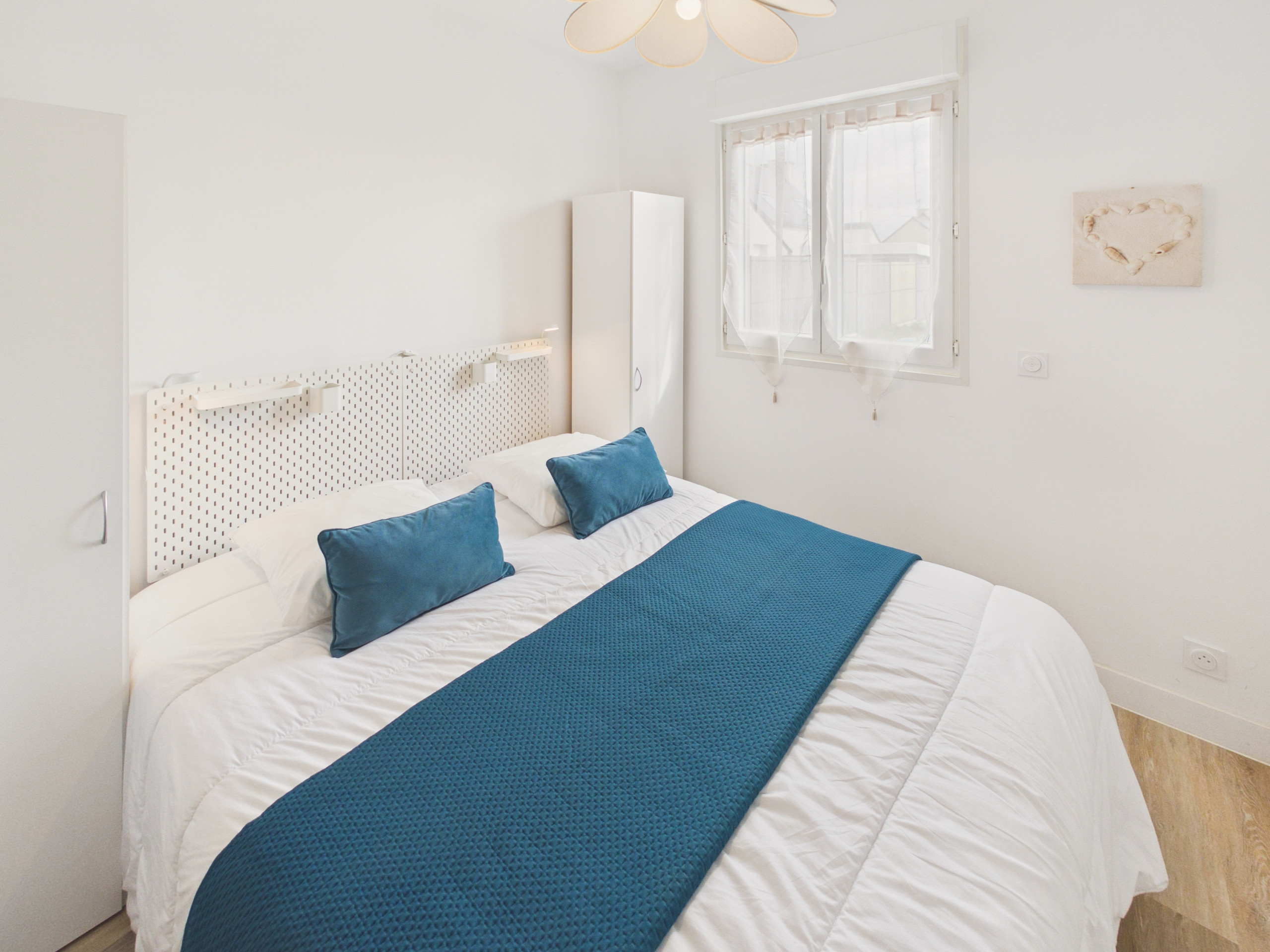 Treten Sie ein, und Sie werden sofort von der Dekoration im Stil der Meeresküste verzaubert; seine Blautöne und Dekorationsgegenstände, die an das Meer erinnern, versetzen Sie sofort in eine Urlaubsstimmung. Seine Holzdecke macht es zu einem gemütlichen und einladenden Ort. Sie finden eine sehr gut ausgestattete Küche mit Induktionsplatten, einem Kühlschrank, einer Mikrowelle, einem Backofen, einem Gefrierschrank, einer Filterkaffeemaschine, einem Toaster und einem Wasserkocher, in der Sie problemlos kochen können. Der Esstisch wartet darauf, dass Sie dort gute Mahlzeiten und gesellige Momente teilen. Schließlich steht Ihnen ein Wohnbereich mit einem Sofa und einem Fernseher zur Verfügung, falls Sie sich vor einem Film entspannen möchten.