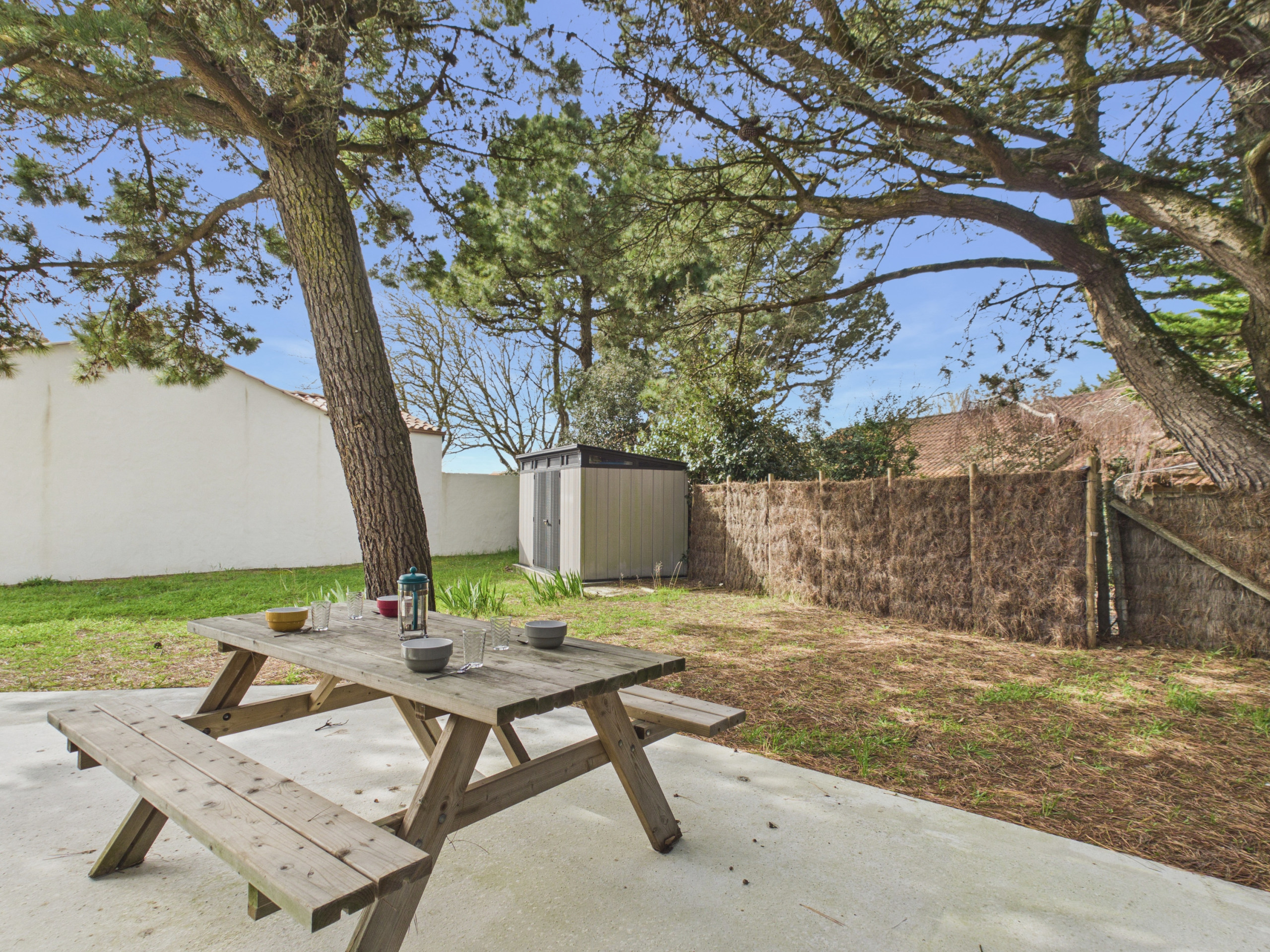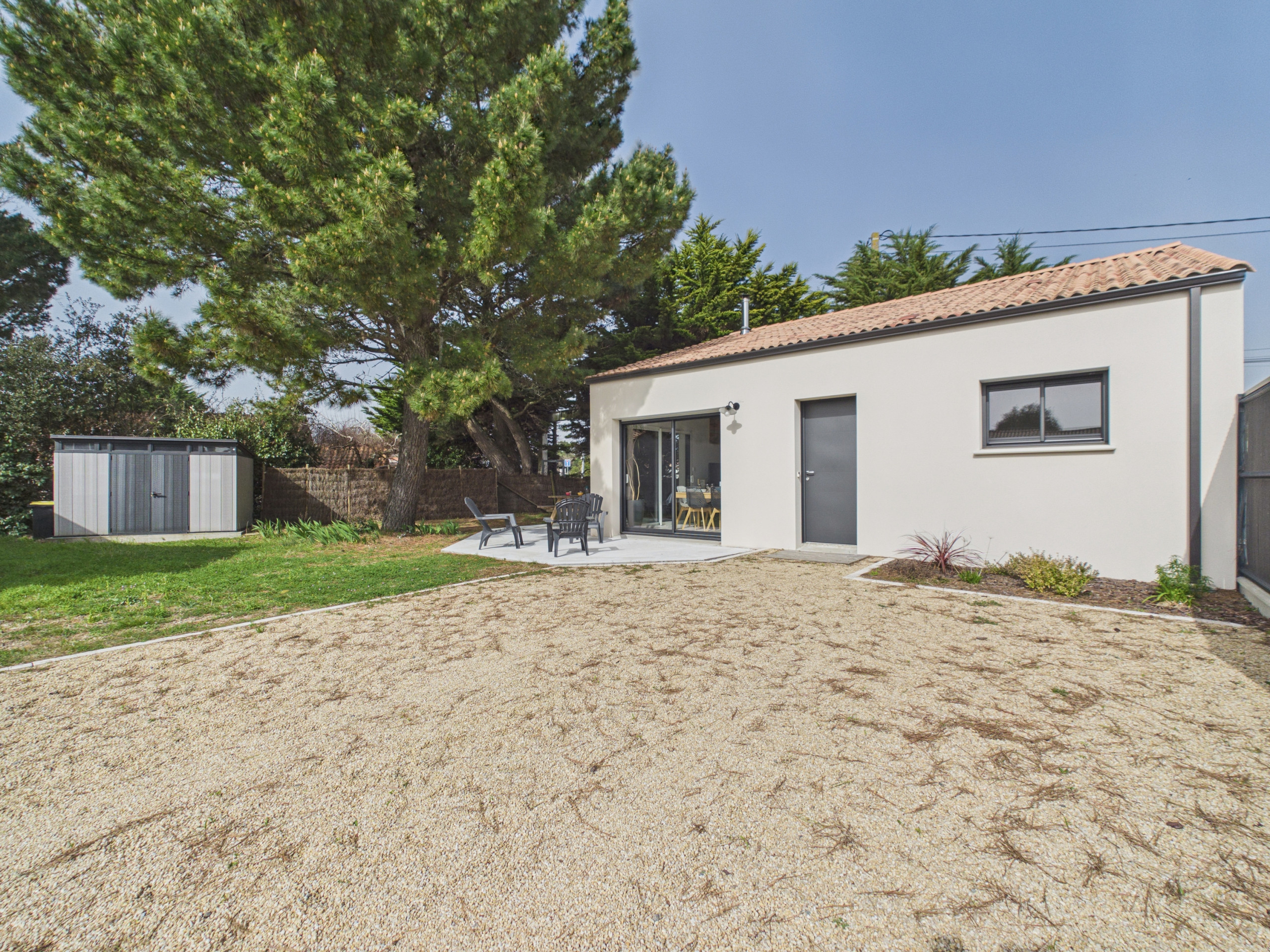 Im Freien werden Sie einen angenehmen, von einer wunderschönen Kiefer beschatteten geschlossenen Garten genießen, der perfekt für Momente der Entspannung im Freien ist. Eine schöne 35 m² große Terrasse, ausgestattet mit Gartenmöbeln und einem elektrischen Grill, wird es Ihnen ermöglichen, köstliche Mahlzeiten zu teilen und sonnige Tage zu genießen.