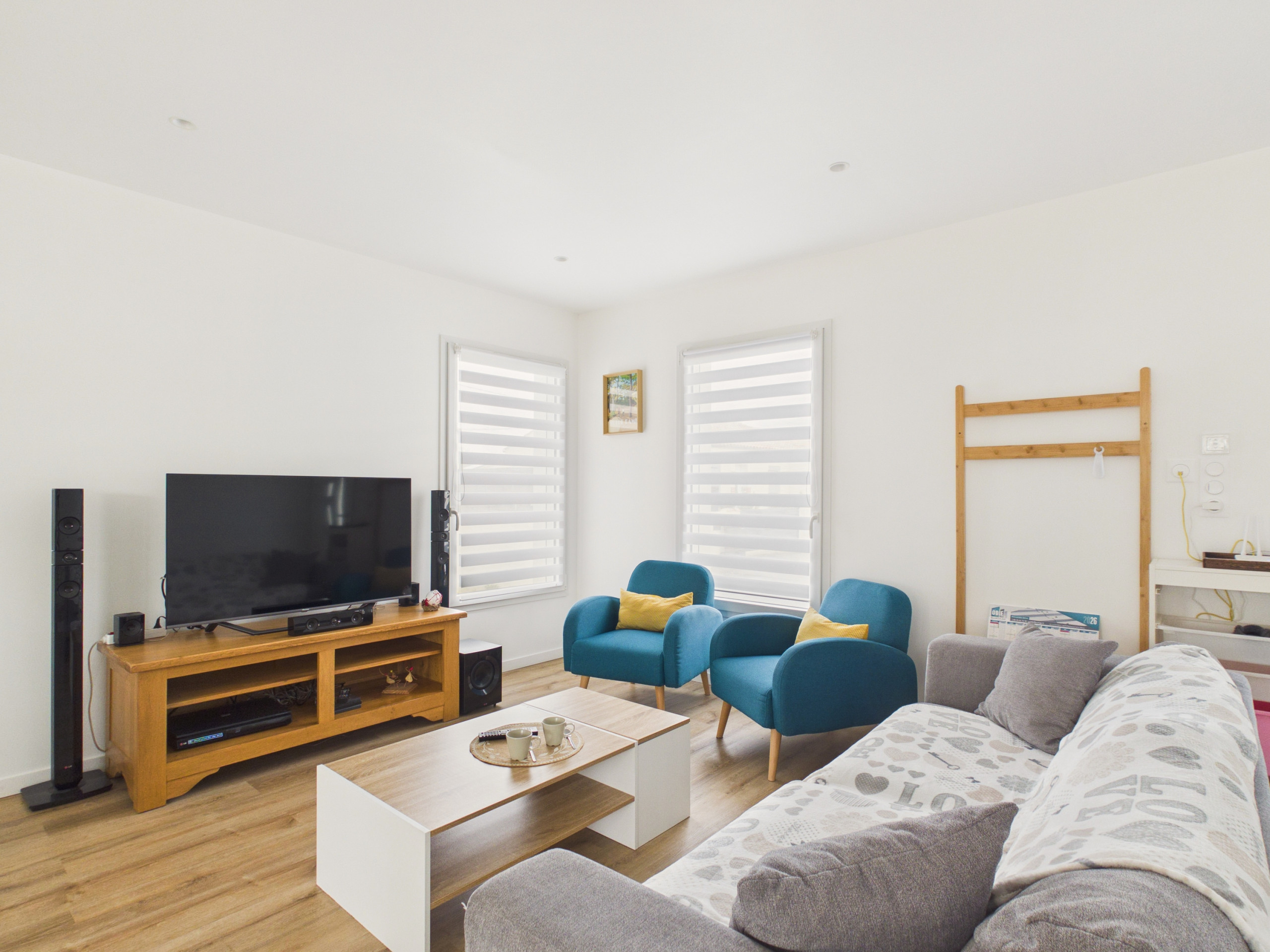 Im Inneren des Hauses werden Sie beim Betreten einen angenehmen, hellen und einladenden Wohnbereich entdecken. Der Wohnzimmerbereich besteht aus einem Sofa, zwei gemütlichen Sesseln und einem Fernseher, ideal zum Entspannen nach einem langen Tag voller Aktivitäten. Das angrenzende Esszimmer verfügt über einen Tisch, der bis zu 6 Personen Platz bietet, um gemeinsam Mahlzeiten zu teilen. Die offene Küche mit Kochinsel ist komplett ausgestattet: Induktionsherde, Kühlschrank, Gefrierschrank, Backofen, Mikrowelle, Geschirrspüler, Filterkaffeemaschine und Senseo, Toaster, Wasserkocher und alles Nötige zum Kochen.