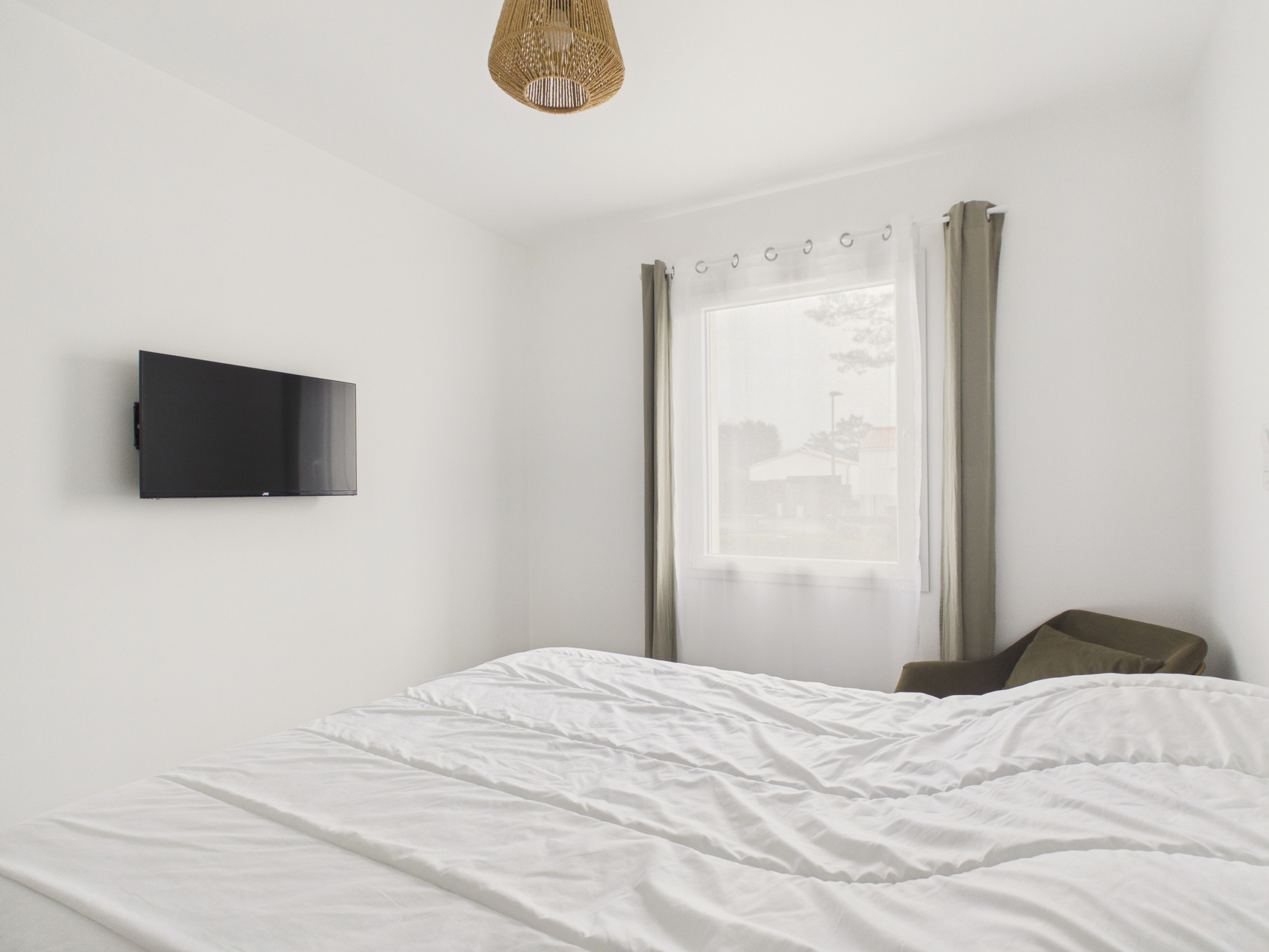 Dieses 90 m² große Haus in Notre-Dame-de-Monts verfügt über 3 Schlafzimmer und kann bis zu 6 Personen aufnehmen. Es verfügt über einen eingezäunten Garten von 500 m², eine Terrasse, Gartenmöbel und eine Plancha. Die offene Küche ist ausgestattet mit Glaskeramikkochfeldern, einem Kühlschrank, einer Mikrowelle, einem Backofen, einer Spülmaschine, einer Filterkaffeemaschine, einer Pressstempelkanne und einer Nespresso, einem Toaster, einem Wasserkocher und einer Zitrusspresse. Zusätzlich stehen Ihnen eine Waschmaschine und ein Bügeleisen zur Verfügung.