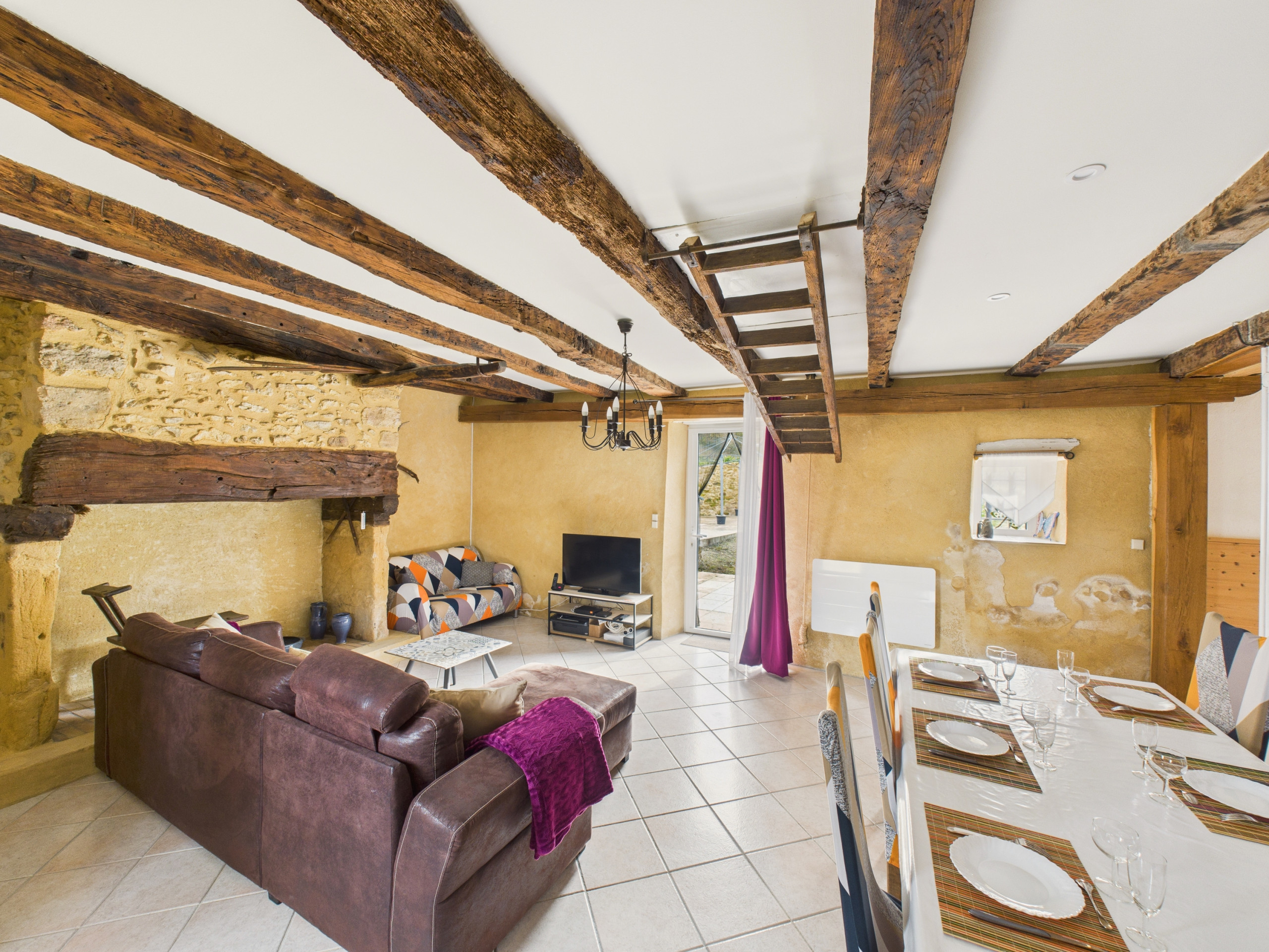 Betreten Sie den Innenhof, steigen Sie ein paar Stufen zur Terrasse hinauf und drücken Sie dann die Eingangstür: Sie werden in einem warmen Saal begrüßt. Auf der rechten Seite lädt ein geräumiges Wohnzimmer zum Entspannen ein, ideal, um sich mit der Familie oder Freunden auf dem Sofa, dem Kaffeetisch und dem Fernseher zu treffen. Auf der linken Seite bietet Ihnen die voll ausgestattete separate Küche (Kühlschrank, Gefrierschrank, Kühlschrank, Gefrierschrank, Backofen, Mikrowelle, Geschirrspüler) alles, was Sie zum Kochen benötigen. Für Ihr Frühstück finden Sie auch einen Toaster, einen Wasserkocher, eine Kaffeemaschine mit L'Or-Kapseln und eine französische Presse. Am Ende des Korridors erwartet Sie ein großer Speisesaal, in dem Sie Ihre Mahlzeiten an einem Tisch mit Platz für bis zu 7 Personen genießen können. Im Sommer können Sie sich für den Terrassentisch entscheiden, der sich ideal für Mahlzeiten im Freien eignet. Ein Badezimmer mit einem Haartrockner und eine separate Toilette vervollständigen das Erdgeschoss.