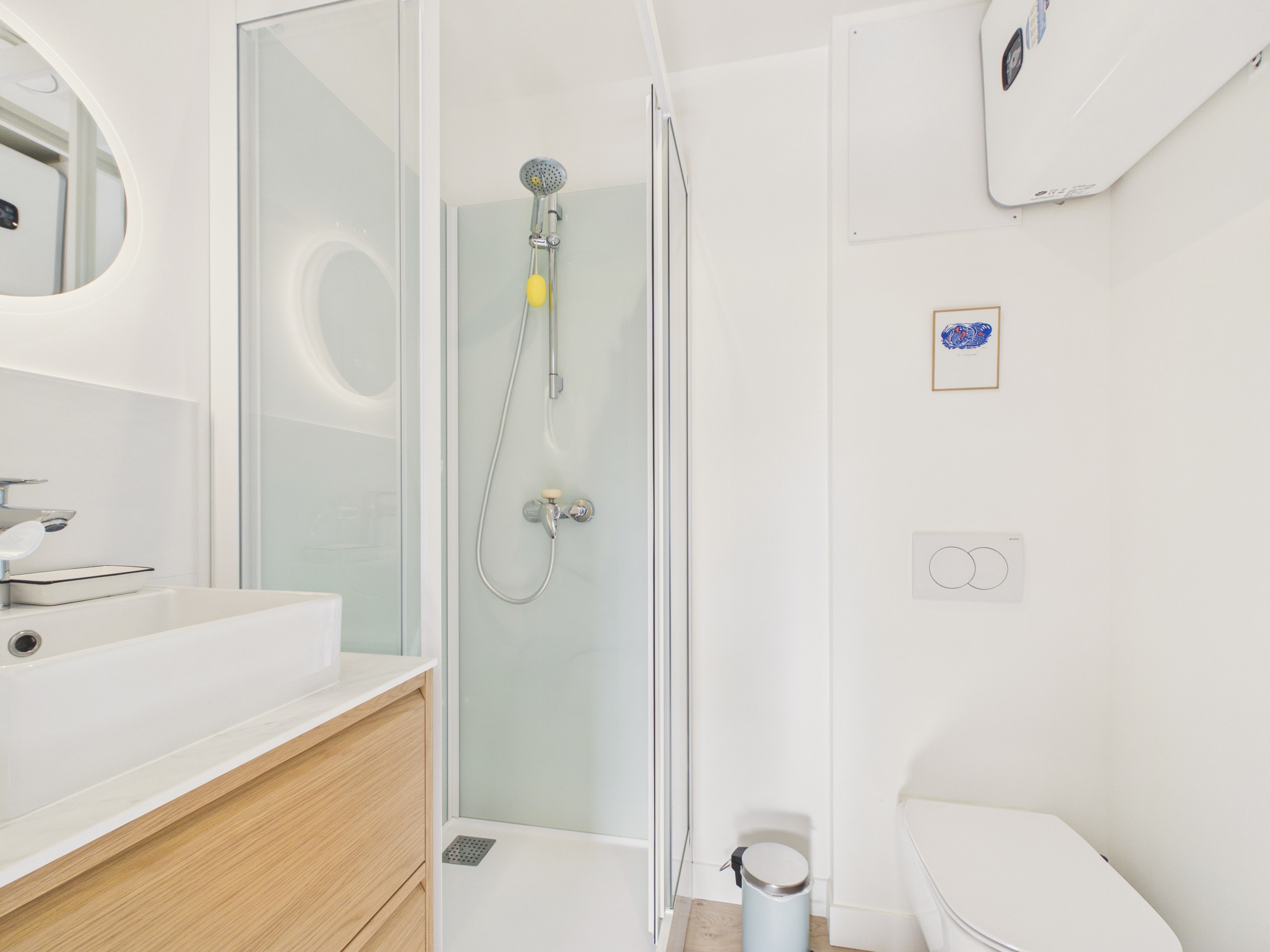 Ein gemeinsames Badezimmer mit Haartrockner befindet sich im ersten Stock. Zwei unabhängige WCs ergänzen die Unterkunft.
