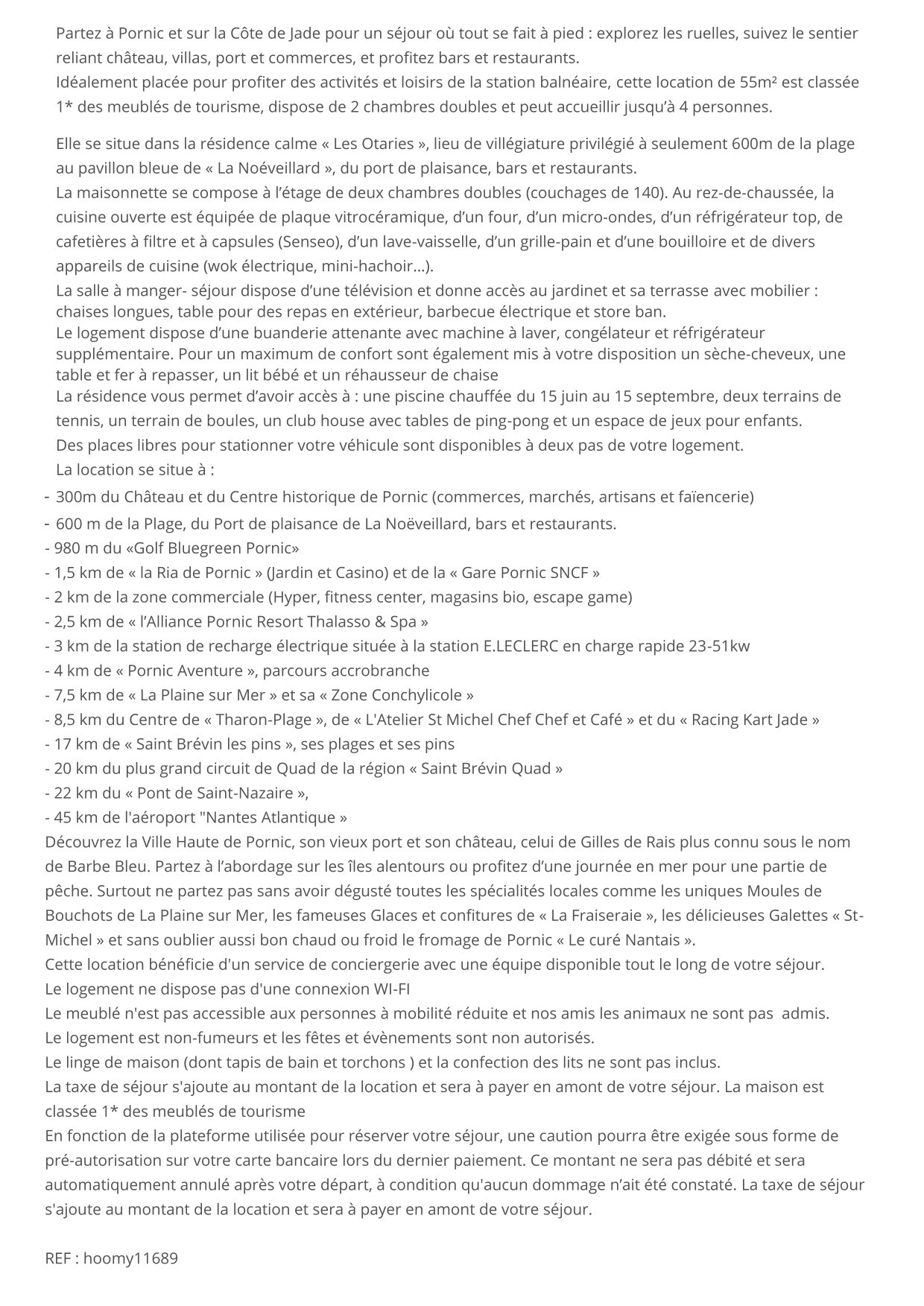 Entscheiden Sie sich für Pornic und die Côte de Jade für einen Aufenthalt, der vollständig zu Fuß erreichbar ist. In der Residenz „Le Domaine du Golf" gelegen, befindet sich die Unterkunft 1 km vom Strand „La Noëveillard", vom Hafen, von Bars und Restaurants entfernt.