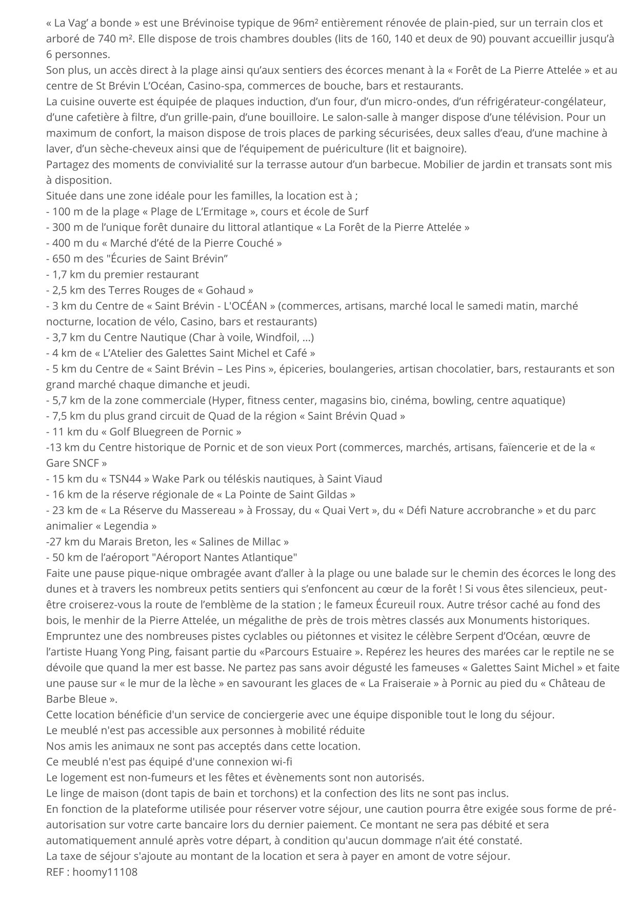• 700 Meter vom Zentrum von „Saint-Brevin-les-Pins" entfernt, wo Sie eine große Auswahl an Geschäften, Bars und Restaurants finden, um Ihren Aufenthalt zu bereichern.