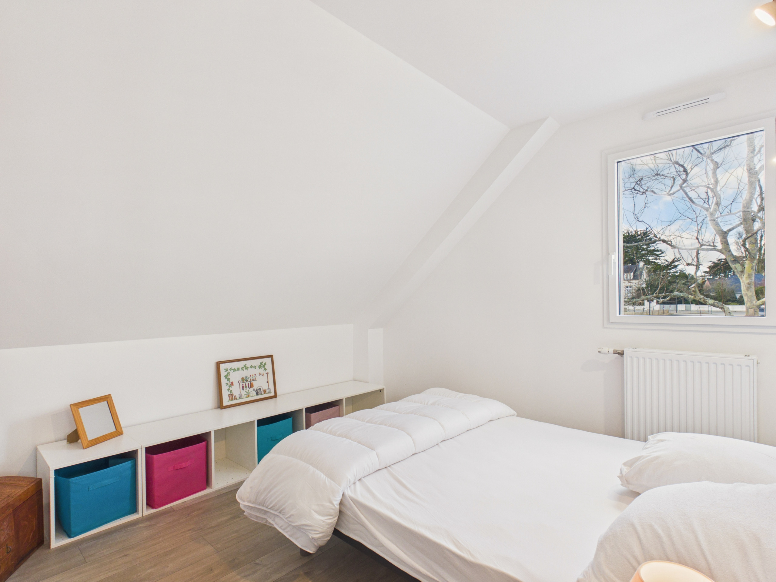 Wenn sich die Müdigkeit bemerkbar macht, können Sie sich in einem der drei Schlafzimmer ausruhen. Zwei davon verfügen über ein Doppelbett. Sie müssen nur zwischen dem Zimmer mit weißen Tönen und maritimen Akzenten oder dem mit rosafarbenen Tönen wählen. Schließlich finden Sie ein letztes blaues Zimmer, das dank des Hochbetts und des Einzelbetts ideal für Kinder ist.