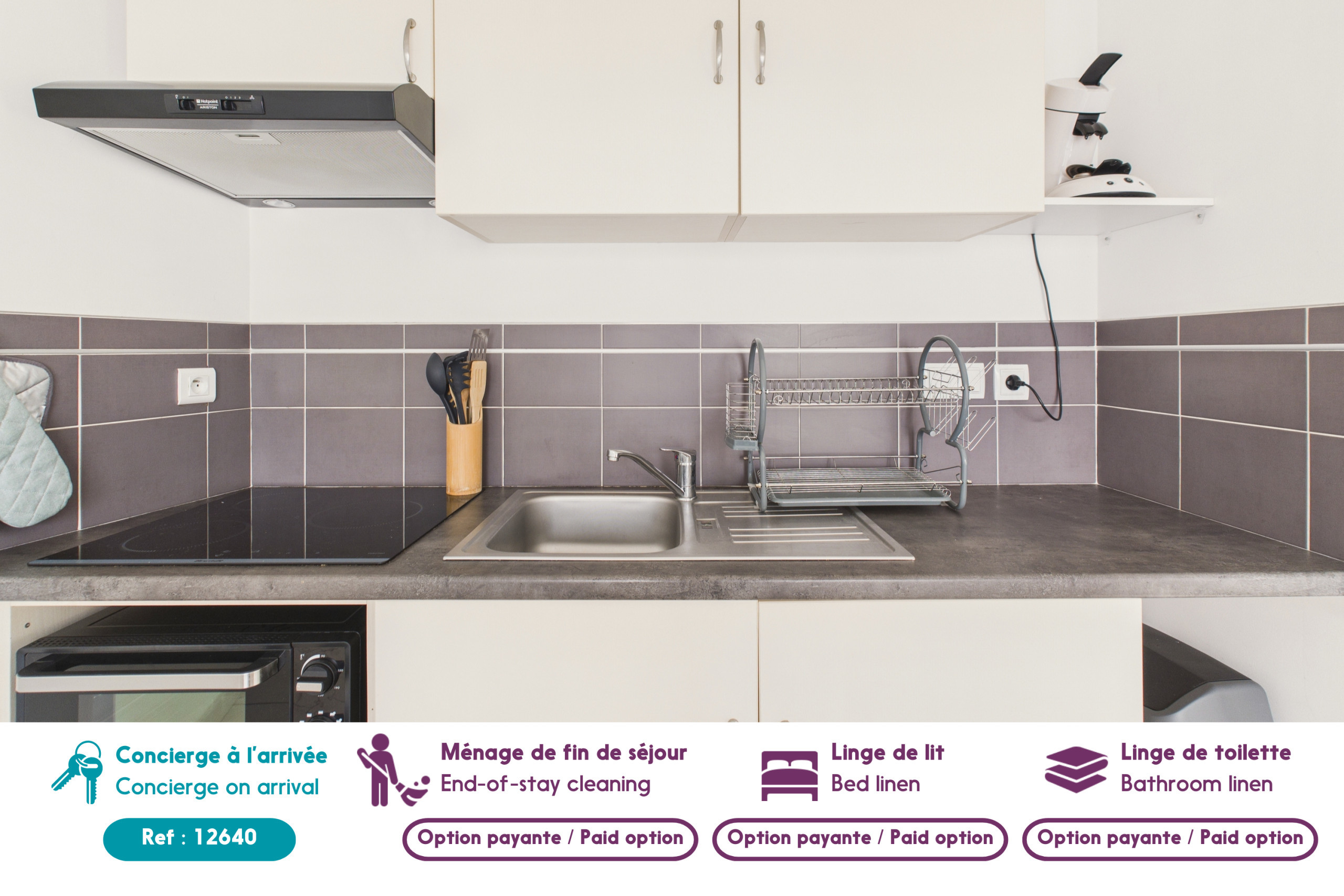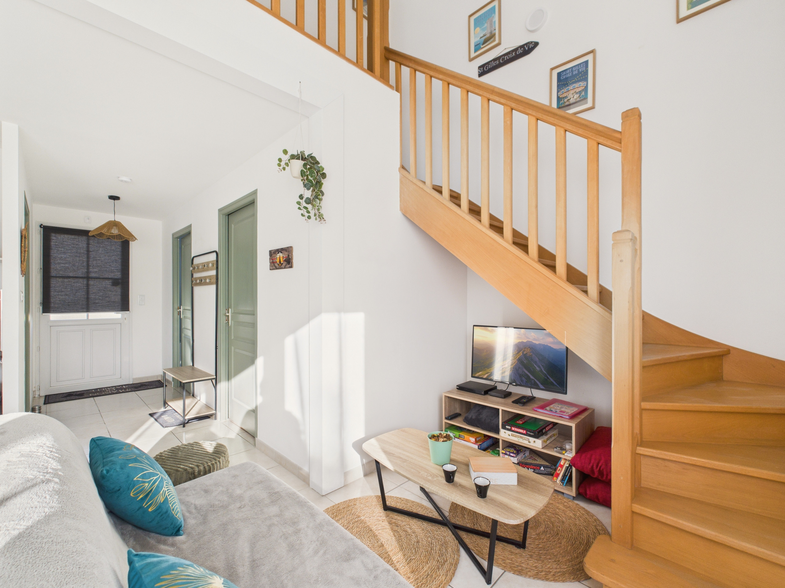 Bei Ihrer Ankunft werden Sie den Wohnbereich entdecken, der das Wohnzimmer mit Sofa, Fernseher und Esstisch umfasst. Direkt daneben befindet sich die offene Küche, die komplett ausgestattet ist. Dort finden Sie: Induktionskochfelder, einen Backofen, eine Mikrowelle, eine Senseo-Kaffeemaschine, einen Toaster, einen Wasserkocher, eine Heißluftfritteuse, eine Waffeleisen und ein Raclette-Gerät.