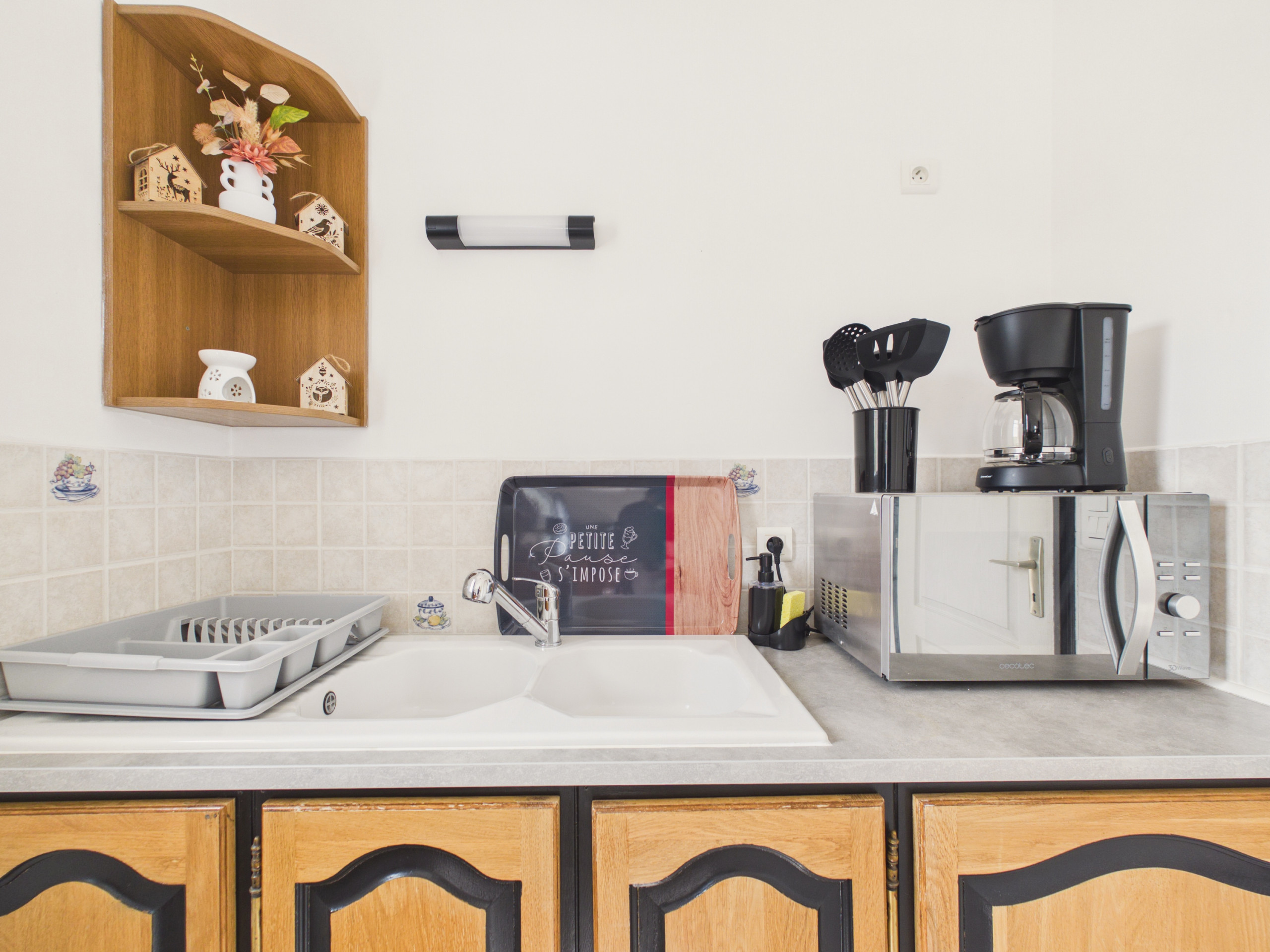 Im ersten Teil der Küche finden Sie einen Teil der Ausrüstung, darunter eine Mikrowelle, einen Wasserkocher sowie einen **Filterkaffeeautomaten und einen Senseo-Kaffeautomaten.** In der Nebenküche begleiten Sie Gaskochfelder, Kühlschrank, Gefrierschrank, Ofen und Geschirrspüler bei der Zubereitung Ihrer Mahlzeiten.