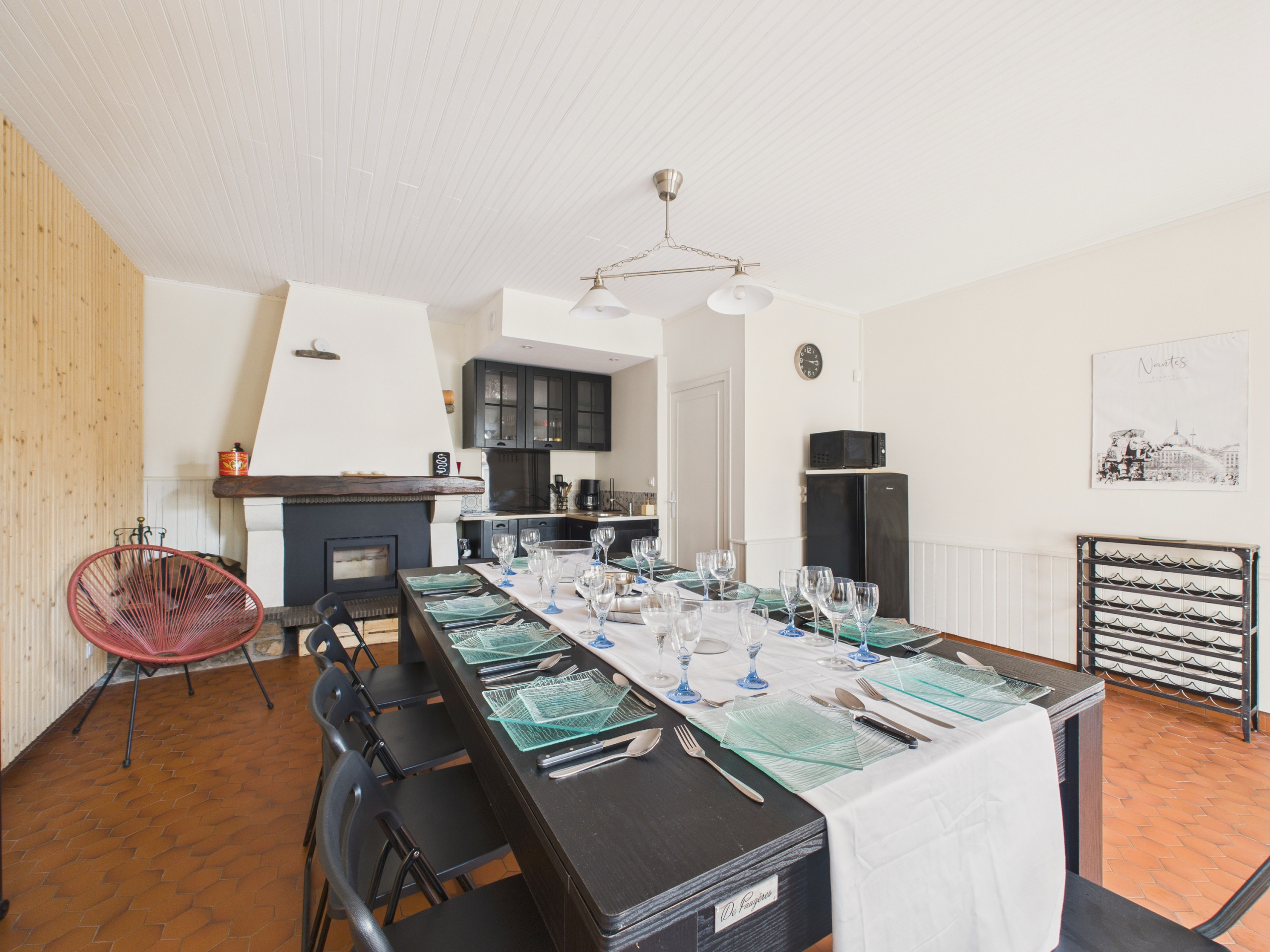 In der Reihenfolge Ihres Besuchs finden Sie im Nordflügel eine separate Wohnküche, die mit allen notwendigen Geräten ausgestattet ist, damit Sie sich wie zu Hause fühlen (Induktionsherd, Backofen, Kühlschrank mit Gefrierfach, Mikrowelle, Mikrowelle, Kaffeemaschine, Espressobohne, Mikrowelle, Kaffeemaschine, Kaffeemaschine, Getreide, Kaffeemaschine, Geschirrspüler, Geschirrspüler, Geschirrspüler, Toaster, Wasserkocher, TV und Bierpumpe). In einer Reihe eine separate Toilette, ein unabhängiges Duschbad, ein Schlafzimmer mit Doppelbett (140) mit Babybett und ein Schlafzimmer mit Doppelbett (160). Der Südflügel bietet Zugang zum großen Wohnzimmer mit Kamin (Holz verfügbar) und Zugang zum Glasfaser-WLAN. Dann in einer Reihe eine separate Toilette, ein unabhängiges italienisches Duschbad, ein Schlafzimmer mit Doppelbett (160) und ein begehbares Einzelzimmer (90). Im Obergeschoss befinden sich eine Mastersuite (160) mit italienischem Duschbad und WC sowie ein Doppelzimmer (140) mit Duschbad. Im Untergeschoss finden Sie eine Garage, in der Sie Ihre Fahrräder abstellen können, eine Waschküche (Waschmaschine und Trockner, Bügeleisen und Bügelbrett), einen Tischfußball und zwei zusätzliche Kühl- und Gefrierschränke.