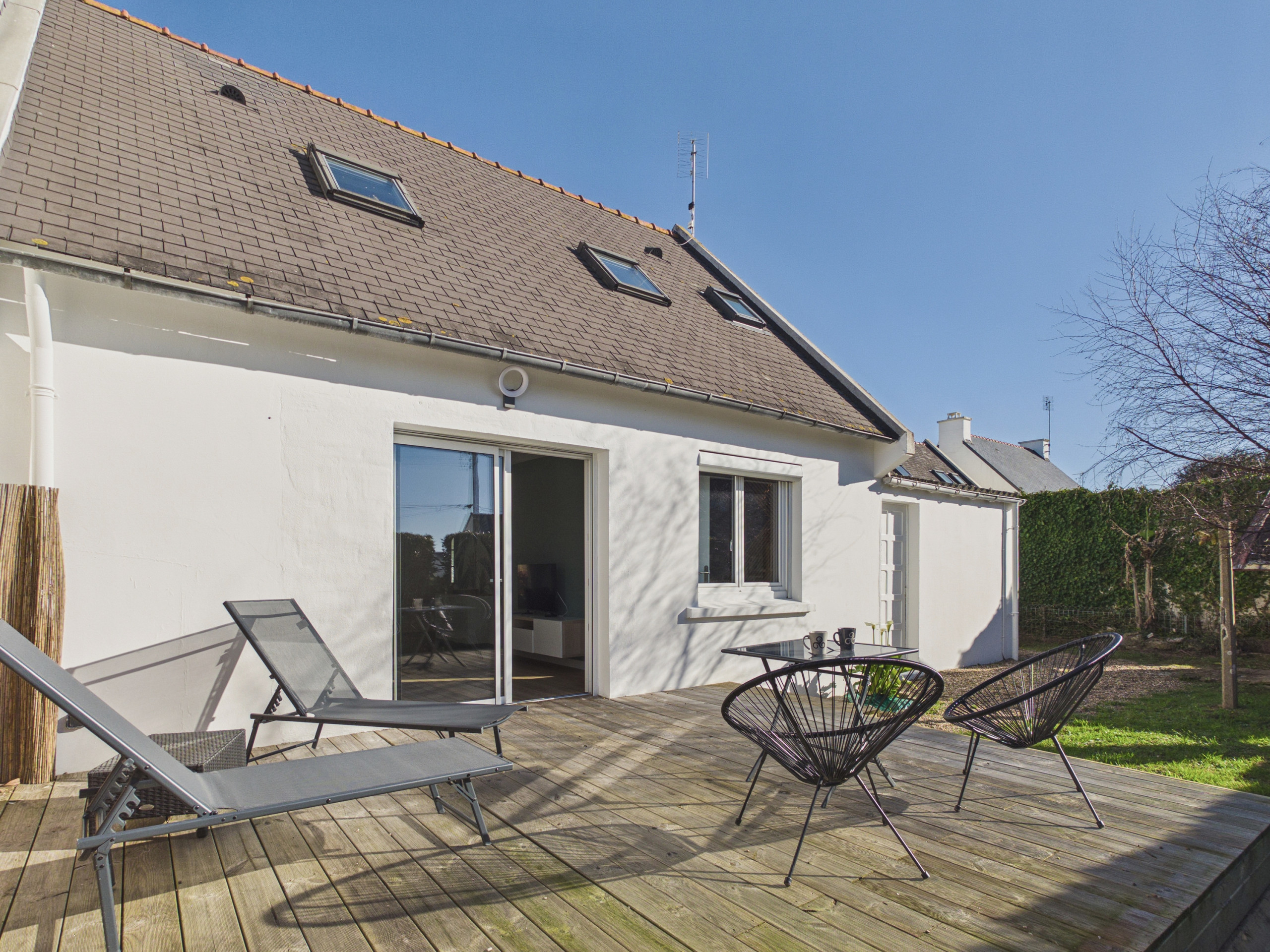 Gelegen in Treffiagat, in een rustige wijk, verwelkomt deze mooie gemeubileerde woning u op slechts 600 m van het strand en 900 m van de haven. Volledig uitgerust, kan hij comfortabel tot 6 reizigers ontvangen voor een verblijf vol comfort. U zult vooral de veranda waarderen, ideaal om te ontspannen en lekkere maaltijden te delen, uitkijkend op een afgesloten tuin waar zich ook een barbecue bevindt. Aan de andere kant van de accommodatie zal een terras uitgerust met ligbedden u in staat stellen te ontspannen in de zon.
