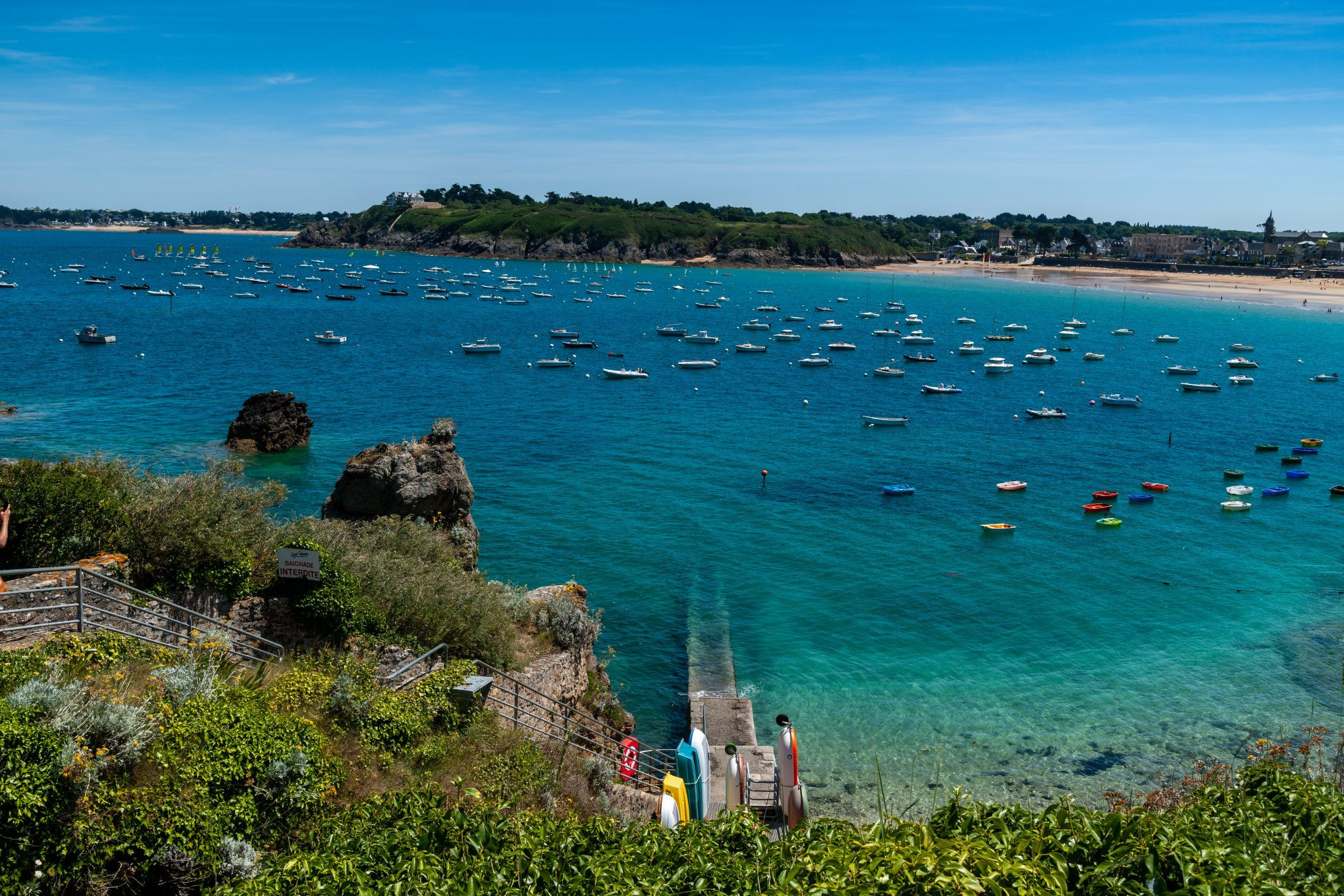 Eleganz-Symbol, Dinard strahlt durch seinen Chic und die Villen der Belle Époque, die davon zeugen. Gelegen an der Smaragdküste ist dieser Badeort ideal, um Meeresluft zu atmen und neue Kraft zu schöpfen. Entdecken Sie seine wunderschönen Strände - darunter l'Écluse mit seinem Meerwasserbecken - und seine atemberaubenden Landschaften. Um die Aussicht zu genießen, können Sie insbesondere den berühmten GR34-Wanderweg oder die Promenade du Clair de Lune nutzen. Und für Sportbegeisterte gibt es garantiert etwas Passendes unter den verschiedenen Wassersportaktivitäten. Sonst zögern Sie nicht, in See zu stechen!