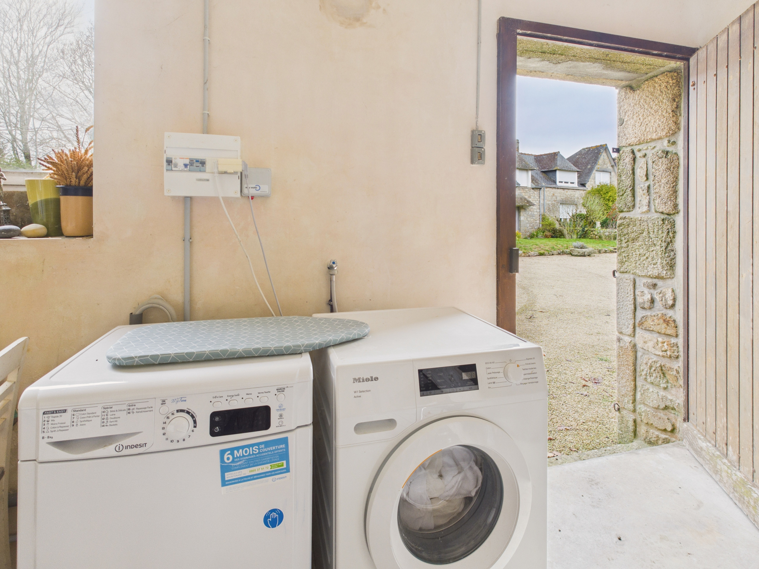 Eine Waschküche stellt Ihnen eine Waschmaschine, einen Trockner, ein Reisebett, einen Hochstuhl sowie ein Bügeleisen und ein Bügelbrett zur Verfügung.