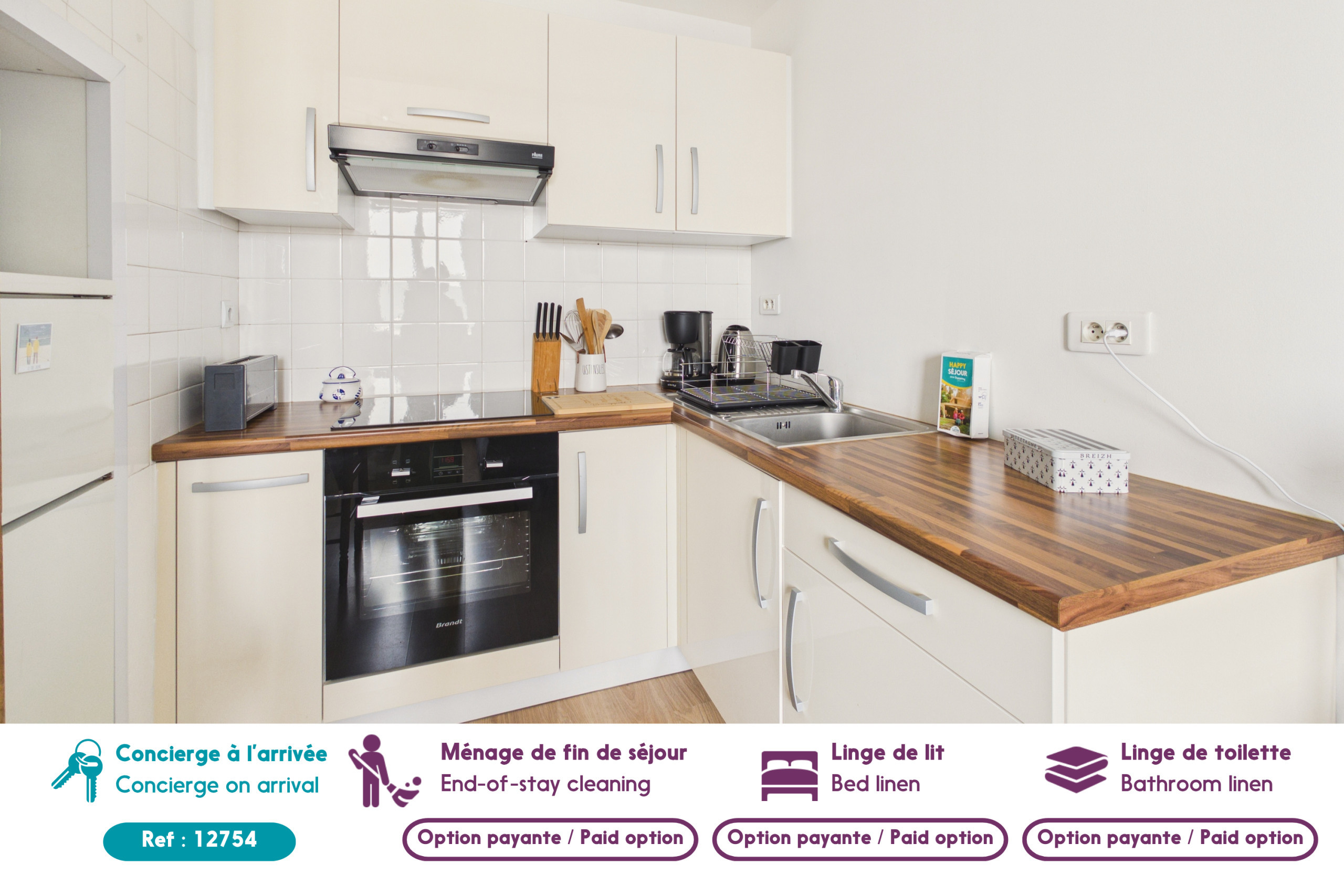 Perfekt angeordnet und funktional bietet diese Wohnung alles, was Sie für einen erfolgreichen Aufenthalt benötigen. Ein angenehmer Wohnbereich, aufgewertet durch rosafarbene Akzente, erwartet Sie und wird Sie dazu einladen, sich für einen Filmabend auf das Sofa zu kuscheln.
