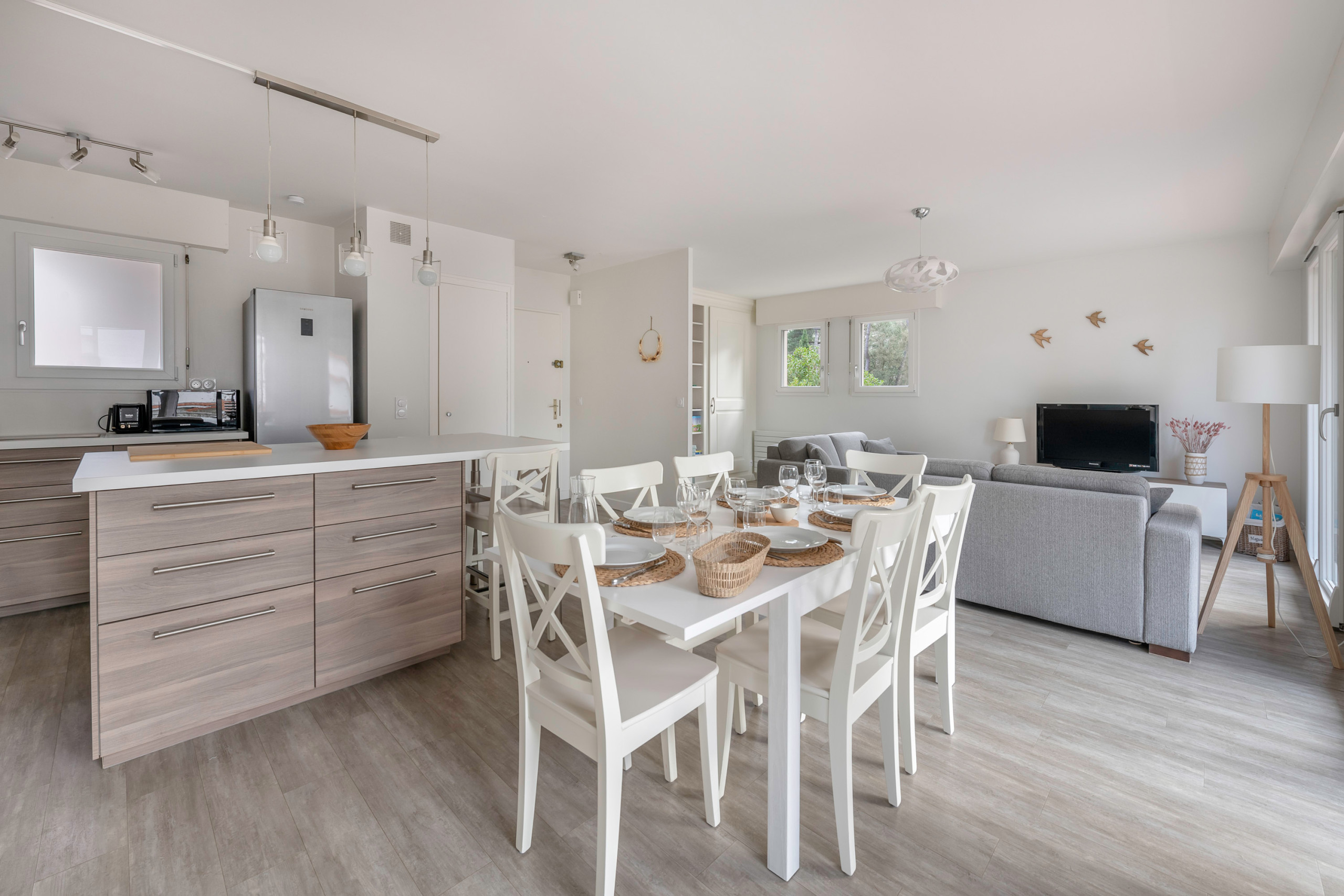 Das 83 m² große Strandapartment in La Baule-Escoublac befindet sich im 1. Stock mit Aufzug und bietet Platz für bis zu 6 Personen (idealerweise 4 Erwachsene und 2 Kinder). Es hat zwei Schlafzimmer, eines mit einem Doppelbett, eines mit zwei Einzelbetten und einem Schlafsofa im Wohnzimmer. Es verfügt über eine 18 m² große Terrasse mit Meerblick, Gartenmöbeln, einem TV, einem Bügeleisen und Bügelbrett, einer Waschmaschine und einem Haartrockner. Die separate Küche ist mit Induktionskochfeldern, einem Kühlschrank, einem Gefrierschrank, einer Mikrowelle, einem Backofen, einem Geschirrspüler, einer französischen Presse, einer französischen Presse, einer französischen Presse, einem Wasserkocher und einem Toaster ausgestattet. Sie haben auch einen Parkplatz im Freien.