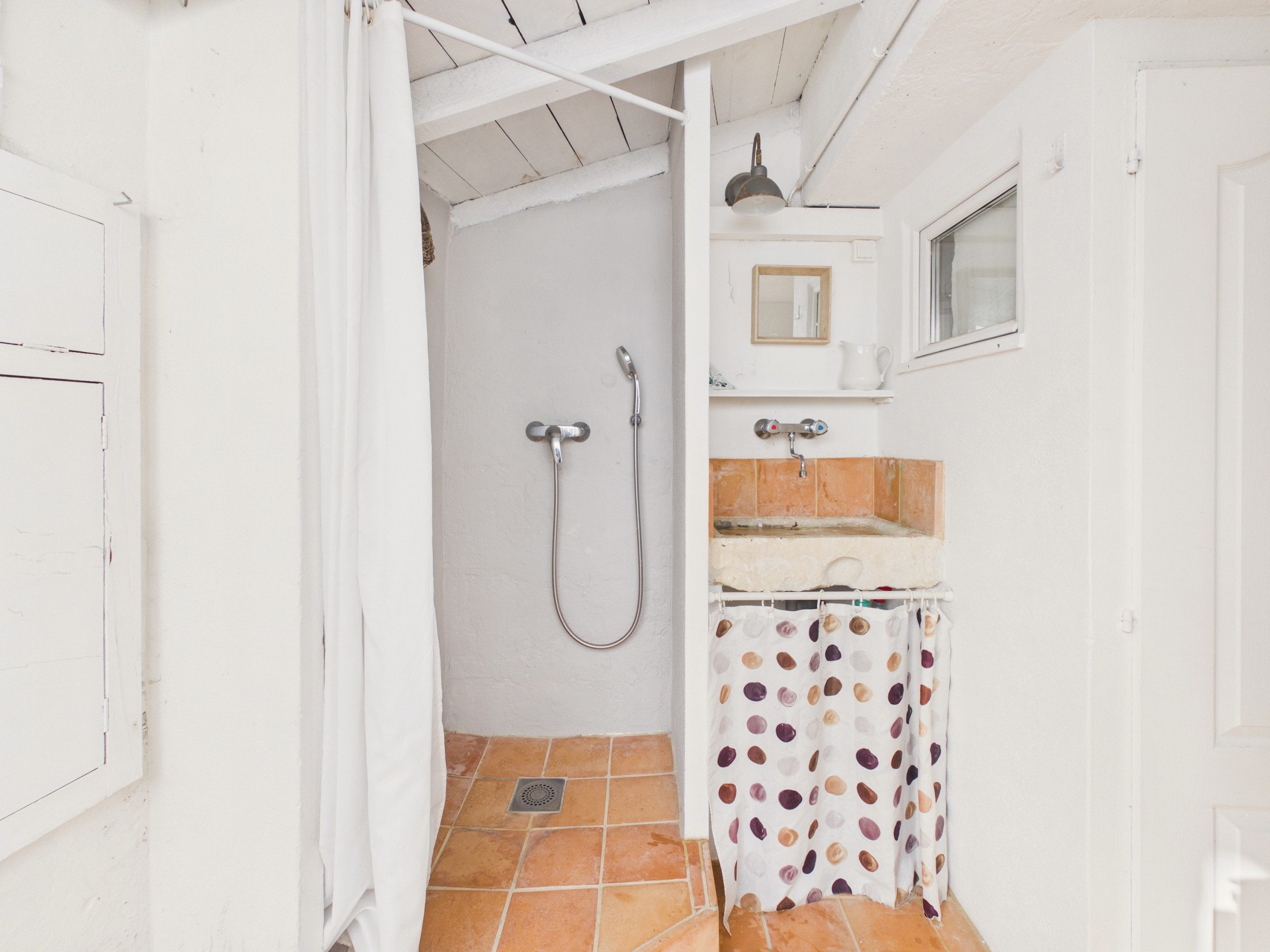 Bei Ihrer Ankunft auf dem Grundstück werden Sie einen kleinen Hof entdecken, der eine Strand-Dusche sowie einen Außenspülstein verfügt, die nach einem Tag am Ozean sehr praktisch sind.