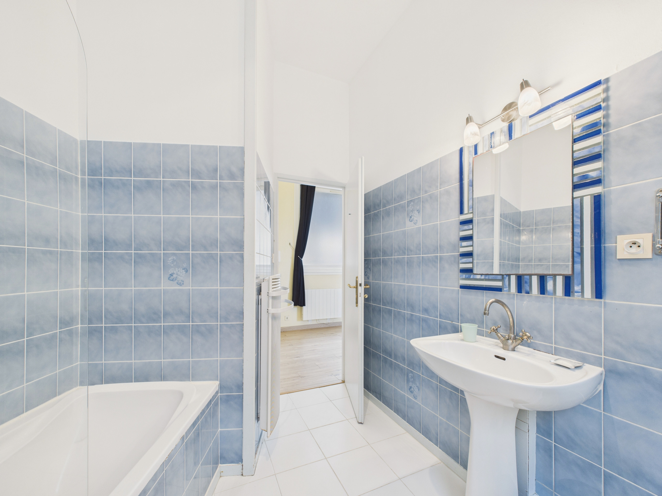 Man entdeckt zunächst ein großes durchgehendes Wohnzimmer. Auf der Südseite öffnet sich ein Esszimmer auf einen ersten Balkon, der auf eine kleine Straße blickt. Dies ist der ideale Ort für Ihre Mahlzeiten im Freien, da dieser Balkon mit der Küche verbunden ist. Diese ist gut ausgestattet: Dreifelderkochplatte mit Induktion, Kühlschrank mit Gefrierfach, Mikrowelle, Backofen, Filterkaffeemaschine und Toaster. Auf dieser Seite der Wohnung befindet sich auch ein Schlafzimmer, das ebenfalls auf den Balkon blickt. Hier finden Sie ein Doppelbett sowie ein privates Badezimmer mit italienischer Dusche, Waschbecken und WC.