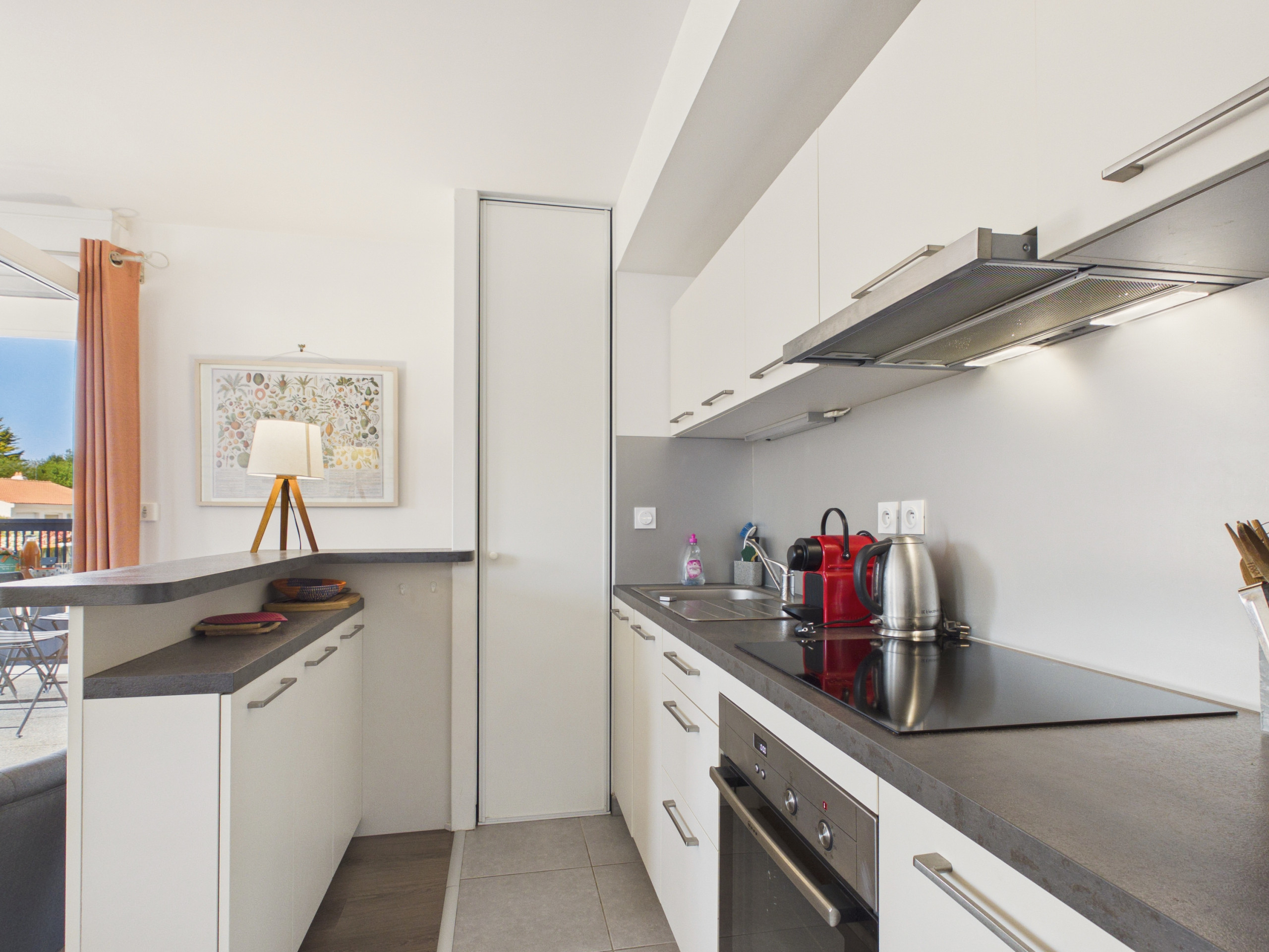 Die offene Küche ist vollständig ausgestattet (Kühlschrank, Gefrierschrank, Ofen, Geschirrspüler und Induktionskochfelder) und bietet Ihnen alles Notwendige zur Zubereitung Ihrer Mahlzeiten. Zum Frühstück stehen Ihnen ein Wasserkocher, ein Toaster sowie eine Filterkaffeemaschine und eine Nespresso-Kaffeemaschine zur Verfügung.