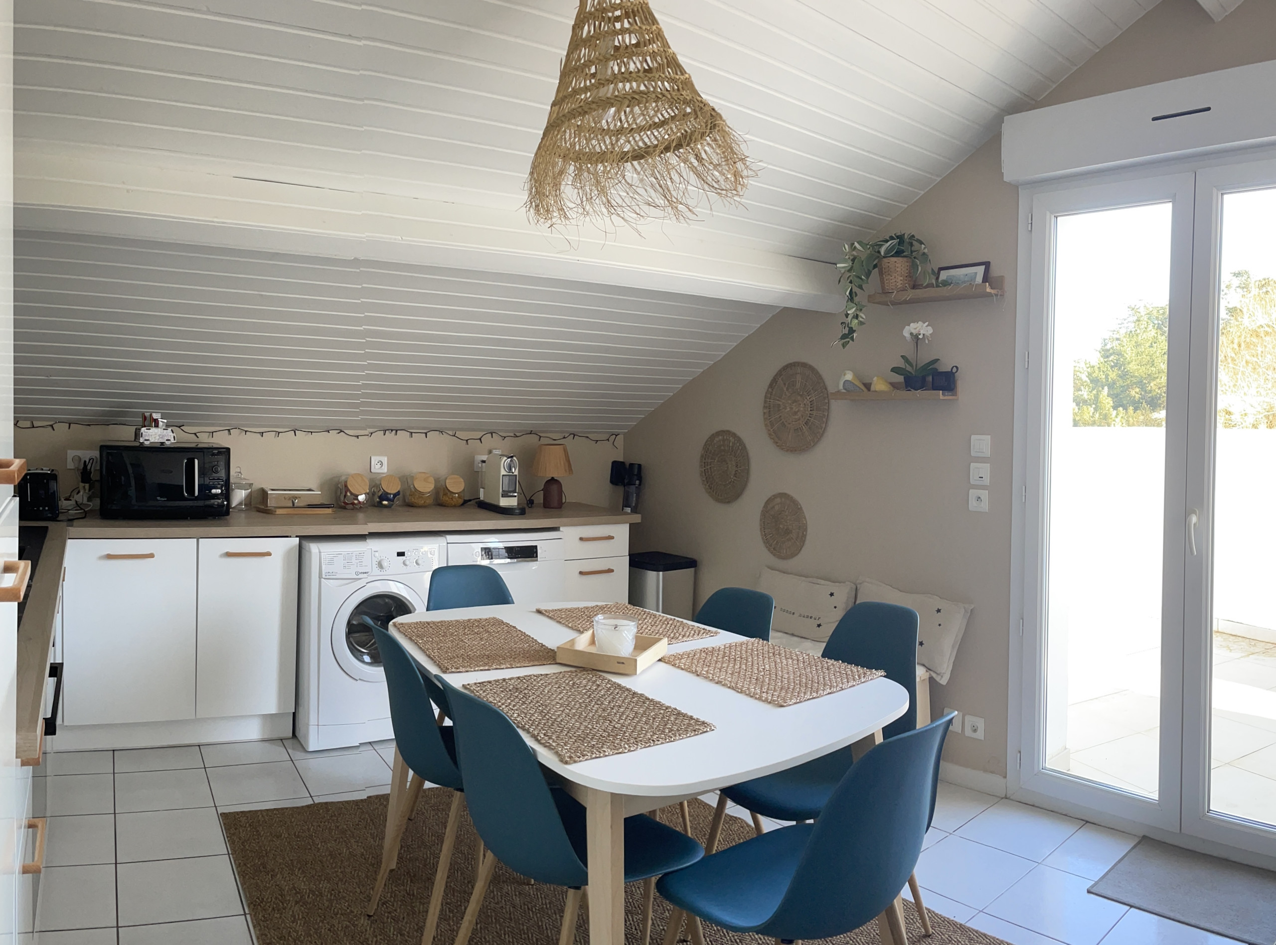 Die Unterkunft besteht aus einer separaten, eingerichteten und ausgestatteten Küche mit Elektroherd sowie der gesamten Küchenausstattung und Haushaltsgeräten, damit Sie sich wie zu Hause fühlen; Kühl-Gefrierkombination, Backofen, Geschirrspüler, Mikrowelle, Filterkaffeemaschine, Toaster, Zitrusspresse, Zerkleinerer und Wasserkocher. Ein Wohn-Esszimmer mit TV und WLAN-Zugang führt zur Holzterrasse von 45m² mit Außenmöbeln; Sonnenliegen und elektrische Markise. Ein Badezimmer mit separater Toilette vervollständigt die Vermietung. Ein Haartrockner, eine Waschmaschine und ein Reisebett stehen Ihnen ebenfalls zur Verfügung.