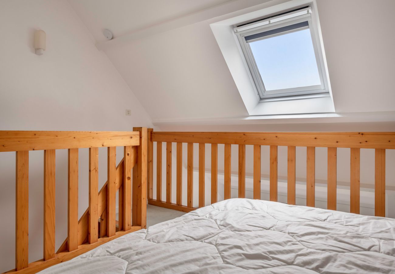 Dieses Apartment besteht aus einem Schlafzimmer und einem Zwischengeschoss mit zwei Einzelbetten, die zu einem Doppelbett zusammengestellt werden können.