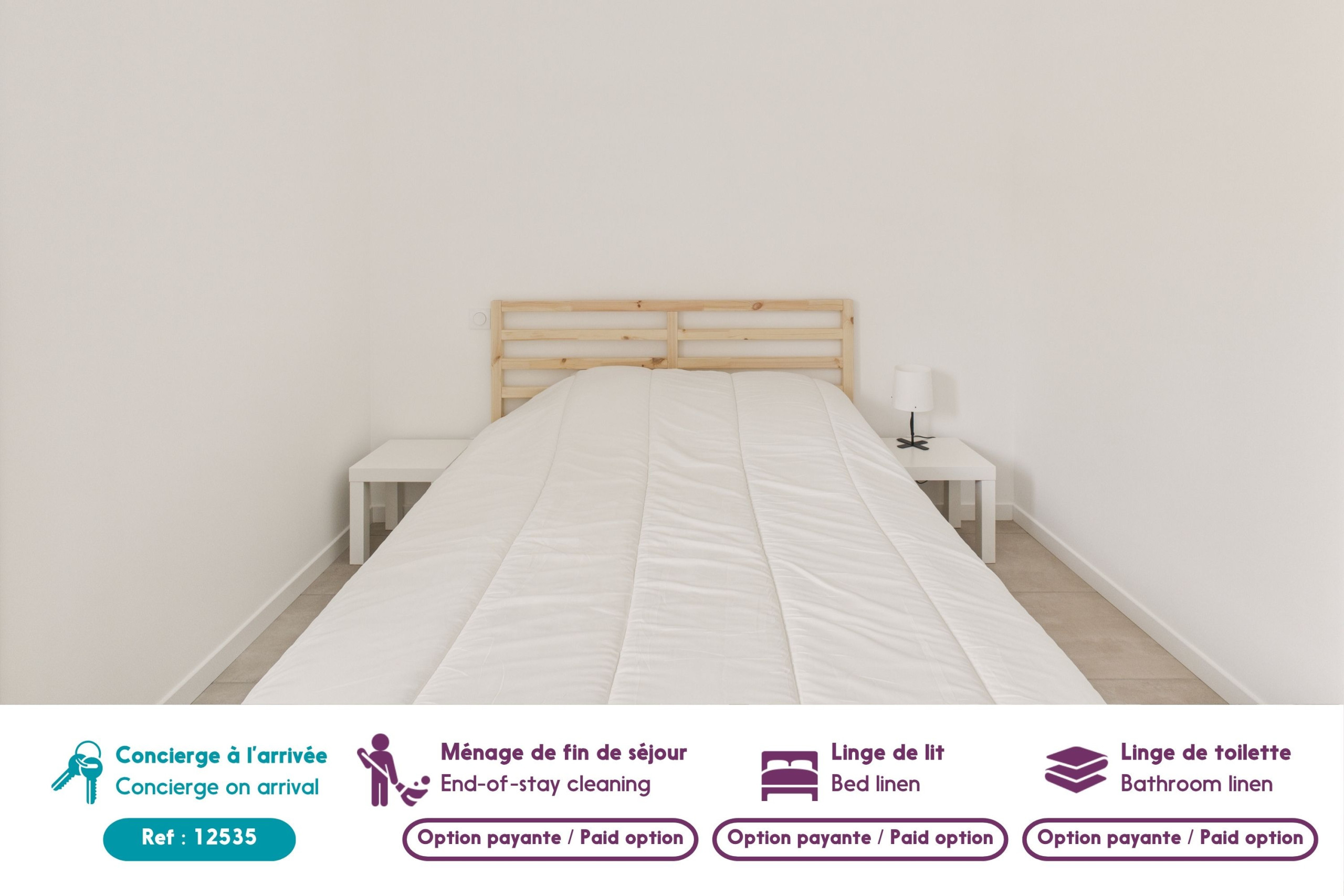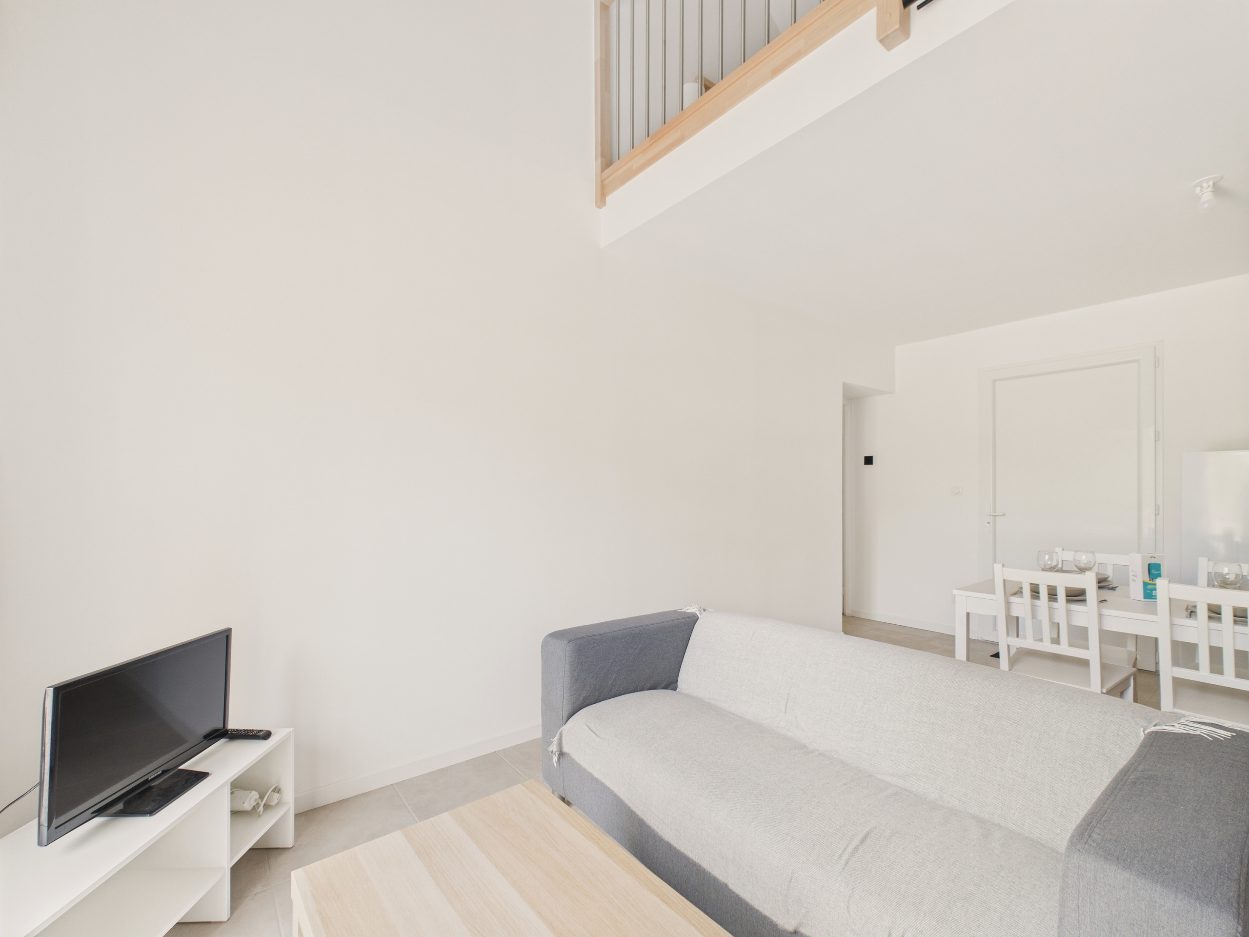 Sie finden eine gut ausgestattete Küche (Induktionsherde, Kühlschrank, Mikrowelle, Gefrierschrank, Geschirrspüler, Kaffeemaschine, Toaster, Wasserkocher und Zitrusspresse), um leckere Mahlzeiten zuzubereiten. Sie ist offen zu einem runden Tisch, an dem Sie sich gerne versammeln werden, um diese köstlichen Gerichte zu genießen und Momente des Lachens zu teilen. Anschließend ermöglicht Ihnen das Wohnzimmer eine Pause vor dem Fernseher. Wenn der Abend kommt, können Sie das Sofa ausklappen, um sich dort für die Nacht einzukuscheln. Schließlich finden Sie ein Schlafzimmer mit einem Doppelbett in hellen Tönen und ein Badezimmer, um sich nach Ihrer Rückkehr vom Strand eine gute Dusche zu gönnen.