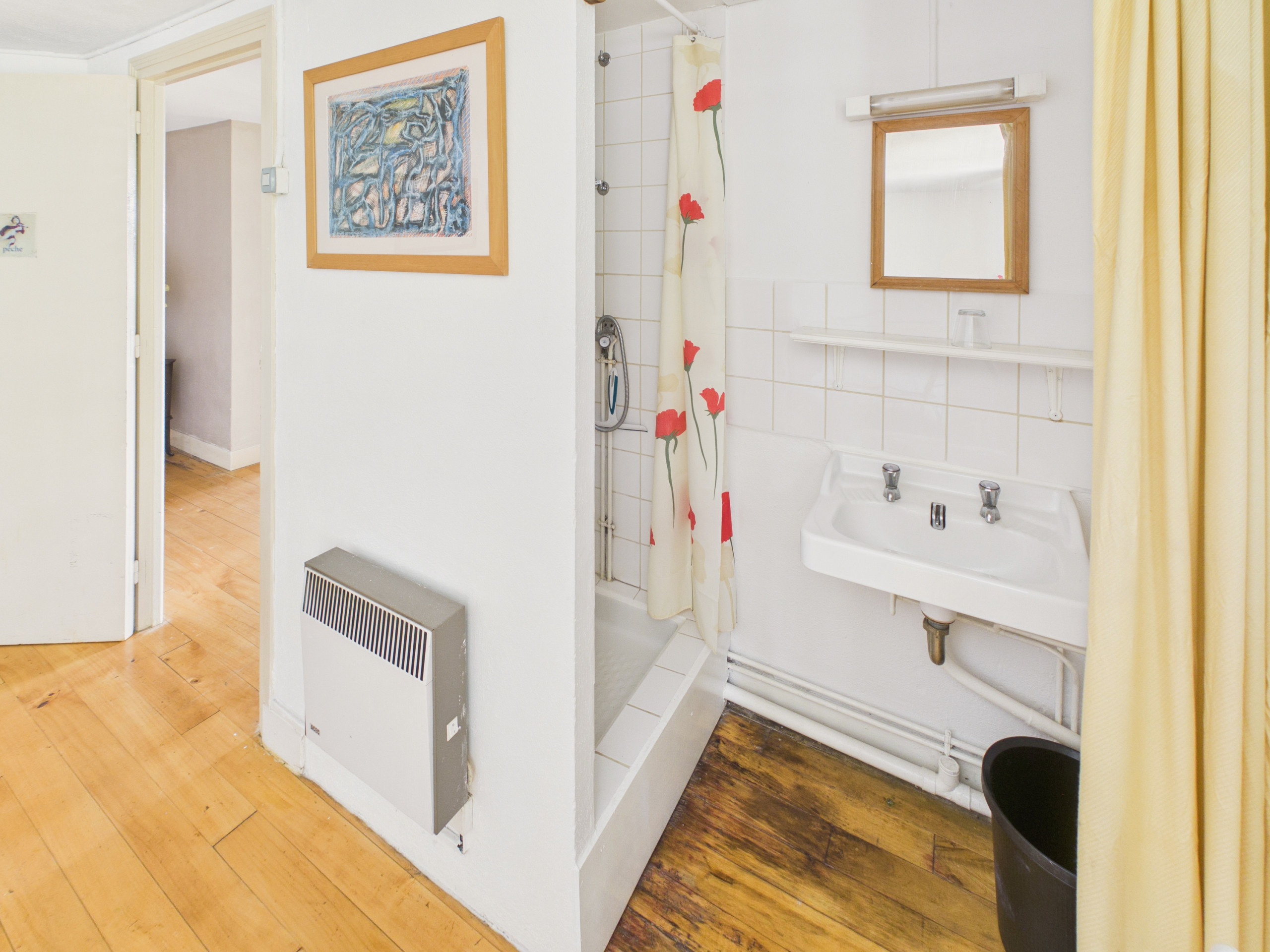 Sie werden einen gemeinsamen Waschraum mit WC und eine separate Toilette betreten.