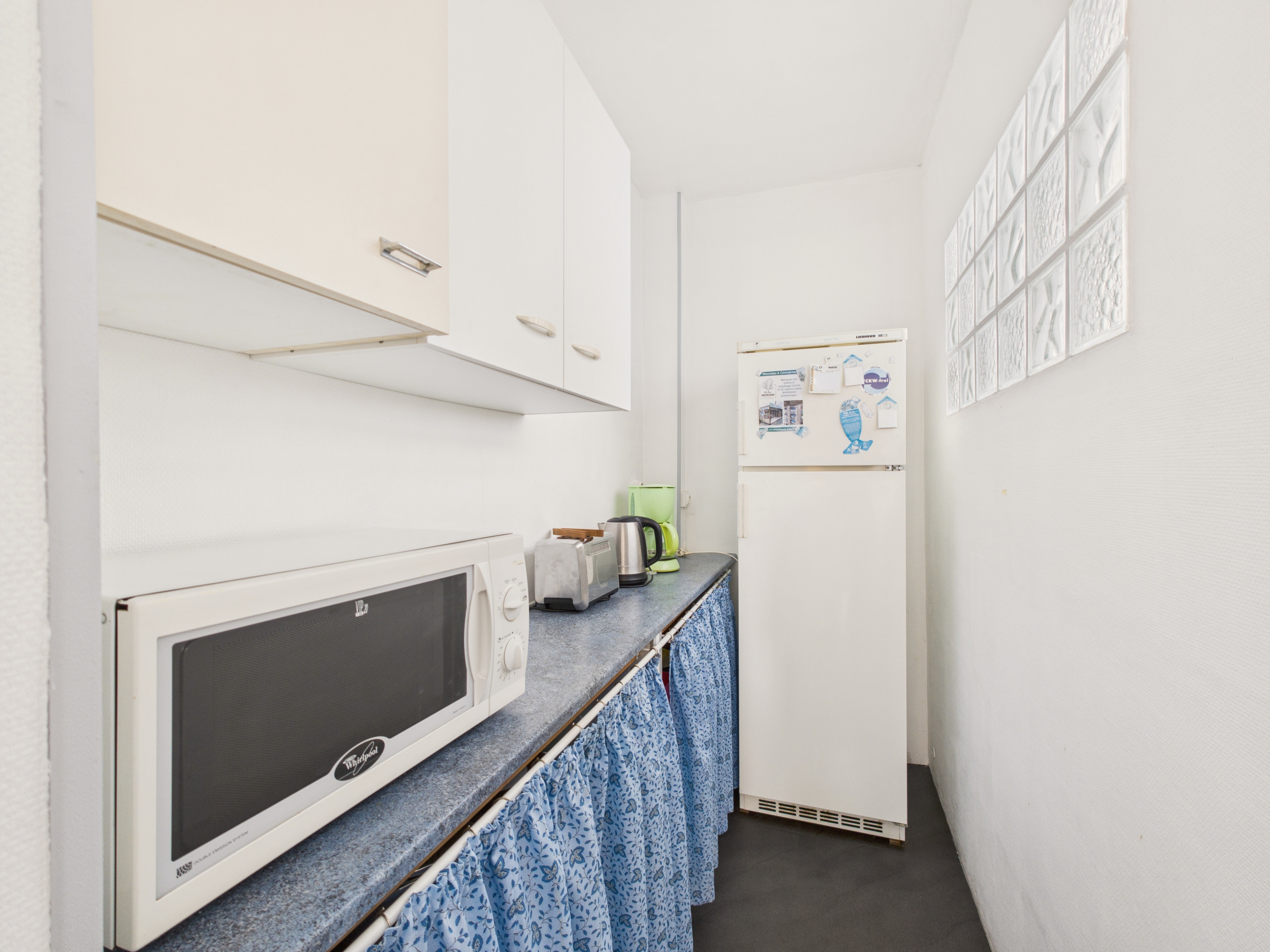 Upon entering the entrance door, you will discover on your right a beautiful living space consisting of a dining table for 6 people and a lounge area with a sofa, television and access to the balcony. On your left, the independent kitchen, fully equipped (refrigerator, freezer, oven, microwave, gas hobs), offers you everything necessary to prepare your meals. For breakfast, kettle, toaster and filter coffee maker are also at your disposal.